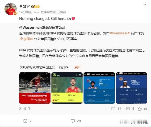 李凯尔自证国籍:我还在这!!!攻破谣言