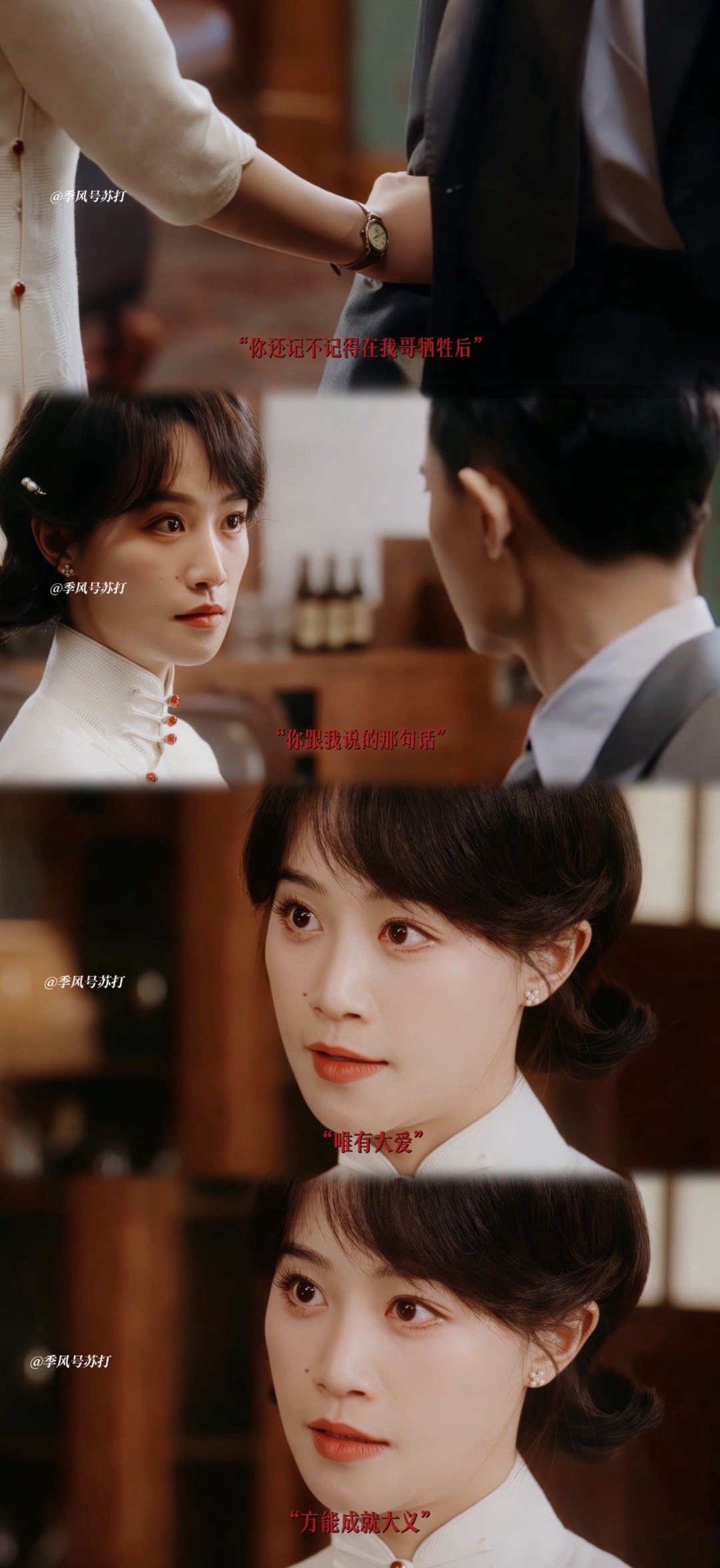 这一刻蓝盈莹真正站在了光里 乔音婉的最后时刻,一身月白旗袍,一曲终了,纵身一跃。蓝盈莹用极其克制的表演,将无尽的悲怆与决绝都凝于那一眼回眸之中。没有哭喊,却让角色的陨落充满了震人心魄的力量与凄美的诗意,这一刻,她真正与角色一同站在了戏剧的光里。