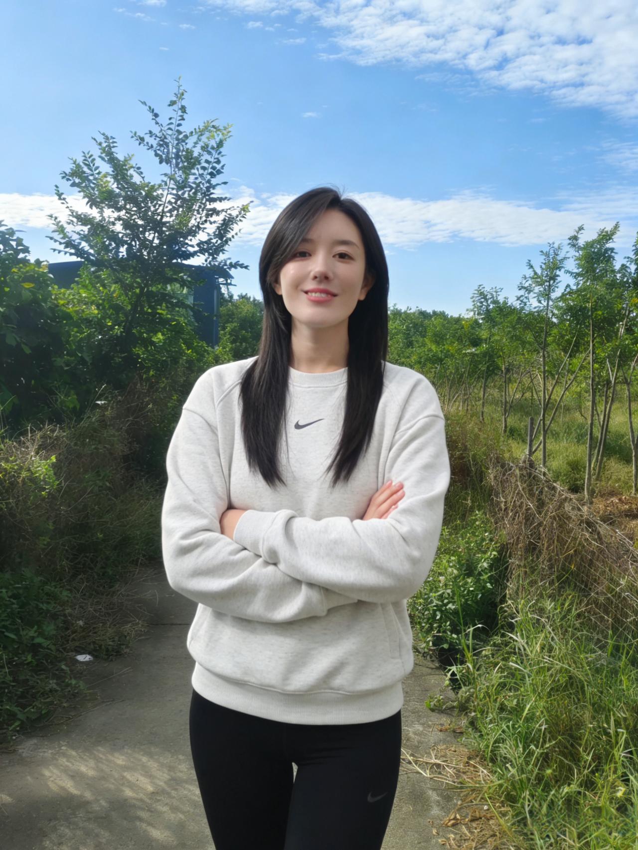 倩影摇曳走荒蹊,云压平芜草色低。 一笑眸中藏皓月,顿教风雨失凄迷。