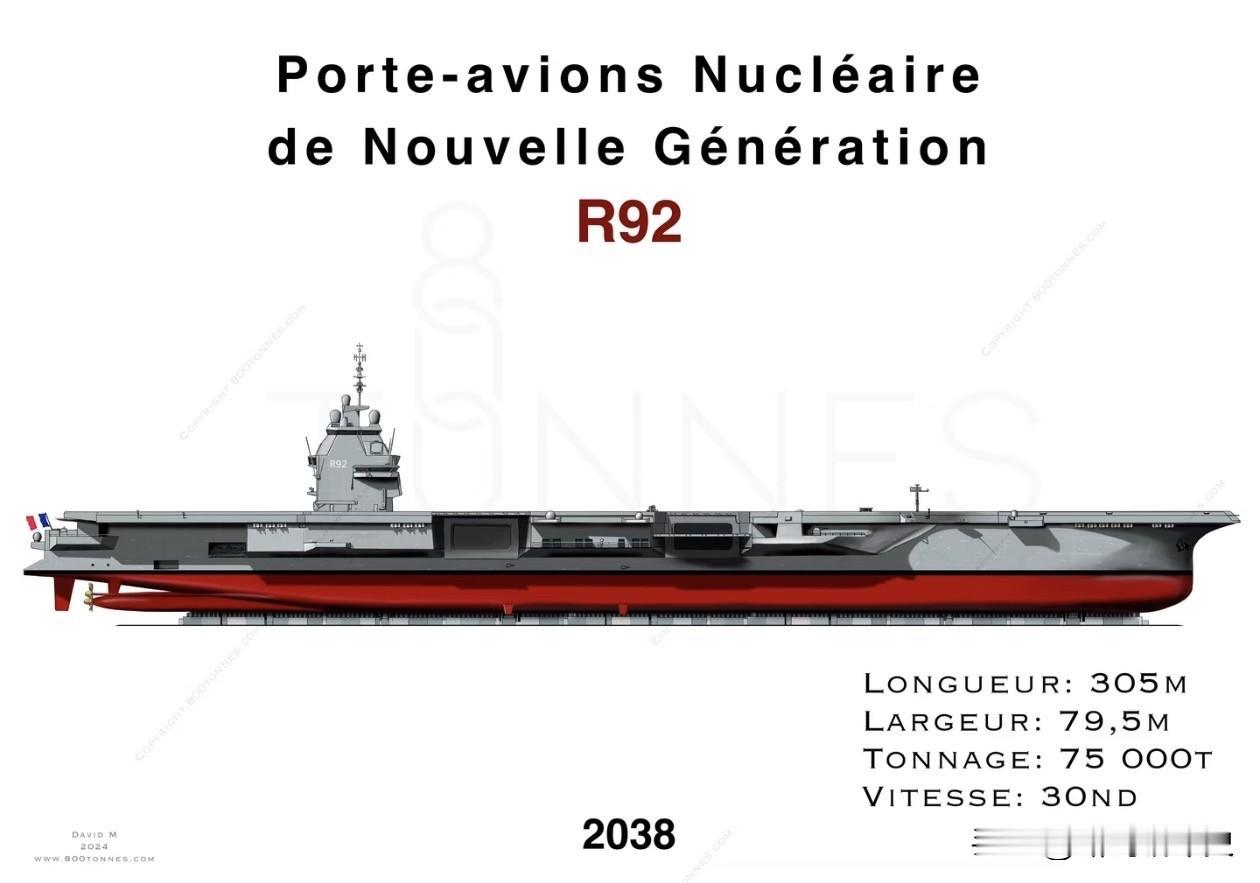 法国计划建造的下一代核动力航母,官方名称为“新一代航空母舰”(Porte-Avions de Nouvelle Génération, PANG),用于替代现役的“戴高乐”号。其满载排水量预计约为7.8万吨,全长约310米,体型几乎是4.2万吨的“戴高乐”号的两倍。它将继续采用核动力推进,并计划配备电磁弹射系统(EMALS)和先进拦阻装置,能更高效地弹射包括未来第六代战机在内的各类舰载机。 根据计划,该航母预计在2032年至2036年间开工建造并进行海试,目标是在2038年“戴高乐”号退役时接替服役。它不仅是为了维持法国海军唯一的固定翼航母作战能力,避免出现战力空窗期,也被视为在欧洲地缘政治变局下,法国强化国防工业、确保战略自主的核心象征。 核动力航母 法国航母 军事 军迷发烧友 武器装备