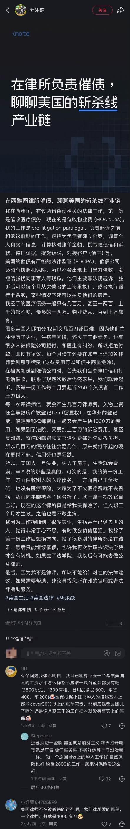 一自称在西雅图经常跟流浪汉边缘人打交道,在催债公司工作过的xhs网友称:牢A讲的