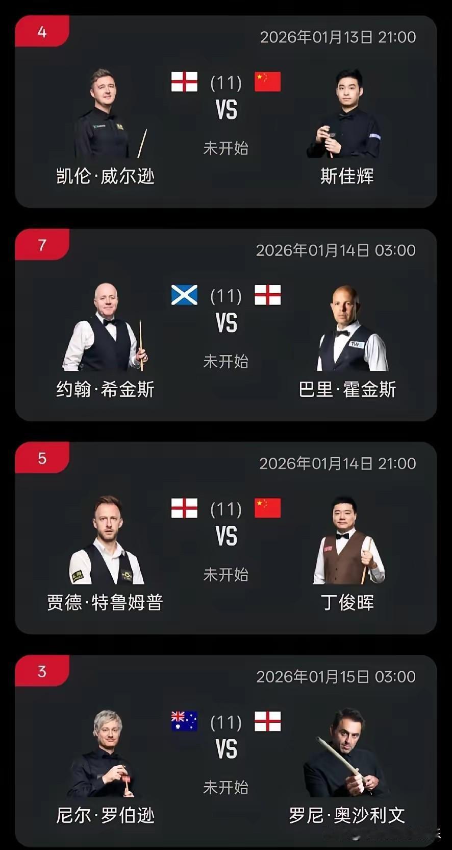 对阵敲定,还该不该期待斯诺克大师赛? 许多人眼中,中国球员除了赵心童都凶多吉少,丁俊晖面对特鲁姆普、肖国栋对战塞尔比几乎难报希望,即使斯佳辉、吴宜泽面对强手凯伦威尔逊、墨菲取胜概率也不大,唯有赵心童凭借世锦赛冠军之优待获得好签。 期待是必然的,那怕只有赵心童一人,大满贯之希望再渺茫,也足够所有中国斯诺克迷去追寻,谁又能确定中国五人不会爆发出强大战斗力。 5进其2就能满足,如果有3人大事可期,再多就不敢想了,不过中国军团也并非鱼腩,还是有一战之力的,不用多,只需要斯佳辉、丁俊晖、赵心童正常发挥,吴宜泽、肖国栋打出夺冠时的风采就已足够。 休息一下又该开启征途,邀请赛不断、排名赛再来,要说期待真的只有大师赛,危机是危险也是机会,化险为夷未必不成,还是多点希望的好。