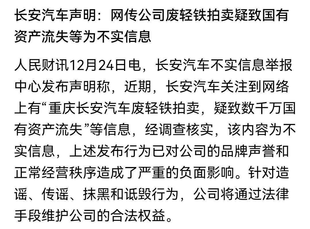 长安法务部真是敬业啊!年底起码能得到朱董事长嘉奖!其实到底有没有废轻铁拍卖,让数千万国有资产流失,你把拍卖流程和价格等发出来不就行了!又不是啥见不得光的事儿,免得人家质疑!