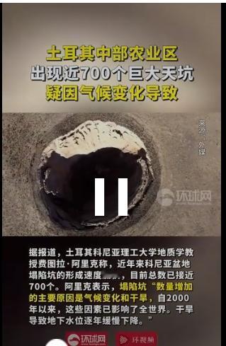 土耳其地面集体“张嘴”!700个天坑吞掉粮仓,农民:脚下土地说塌就塌 刚刚刷到一个视频。画面非常恐怖。视频显示土耳其农田里突然冒出上百个巨大天坑,无人机拍下来像大地被戳了无数个窟窿,好好的庄稼地说没就没,当地农民吓得夜不能寐。 这可不是小打小闹的坑洼,土耳其中部的科尼亚盆地,如今快被700个塌陷坑占领了。要知道这儿可是土耳其的“粮仓”,玉米、小麦、甜菜全靠这片地养活人,现在成片农田被天坑吞掉,有的地块甚至挤着十多个大坑,看着都揪心。 地质教授阿里克说,这都是气候变化惹的祸!2000年以前地下水位每年才降0.5米,现在直接飙到4到5米,相当于每年往下掉一层楼。地下的水本是撑着土地的“千斤顶”,水抽干了,土层没了支撑,自然就塌了。 更要命的是恶性循环:天旱没水,农民只能挖井抽水,合法井不够就偷挖非法井,当地12万口非法井是合法井的三倍。越挖水越少,水越少越容易塌,天坑就像滚雪球一样越变越多。 农民西克的遭遇太戳心了,两年内自家田里炸出两个天坑。第二次塌陷时,他兄弟就在附近,突然传来“震耳欲聋的轰鸣声”,转头一看田地缺了一大块。更吓人的是,地质学家说还有两处要塌,却算不出啥时候会塌。 现在当地人走路都盯着脚底下,生怕下一秒地面就消失。虽然还没人受伤,但天坑已经往村庄蔓延,谁也不敢保证下一个不会出现在家门口。更糟的是,“粮仓”被毁可能推高全球粮价,这影响早就不止土耳其了。 说到底,这就是大自然给的警告。气候变化带来干旱,人类过度抽水雪上加霜,最后只能自食其果。希望这700个天坑能敲醒所有人,别等脚下的土地都“张嘴”了才后悔。 你觉得该怎么阻止天坑继续蔓延?评论区聊聊~