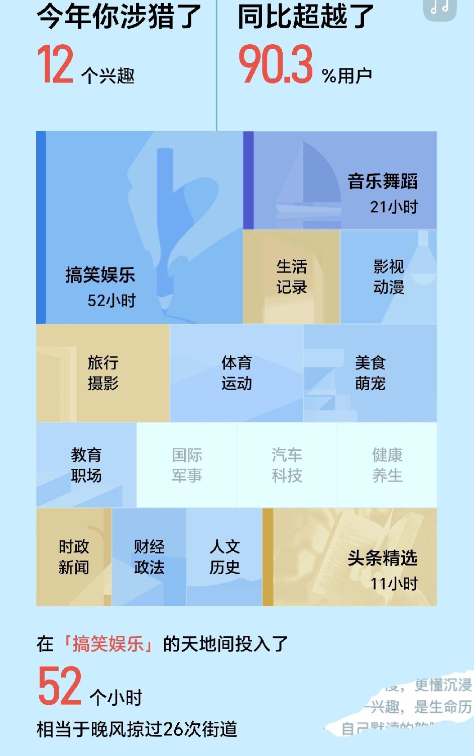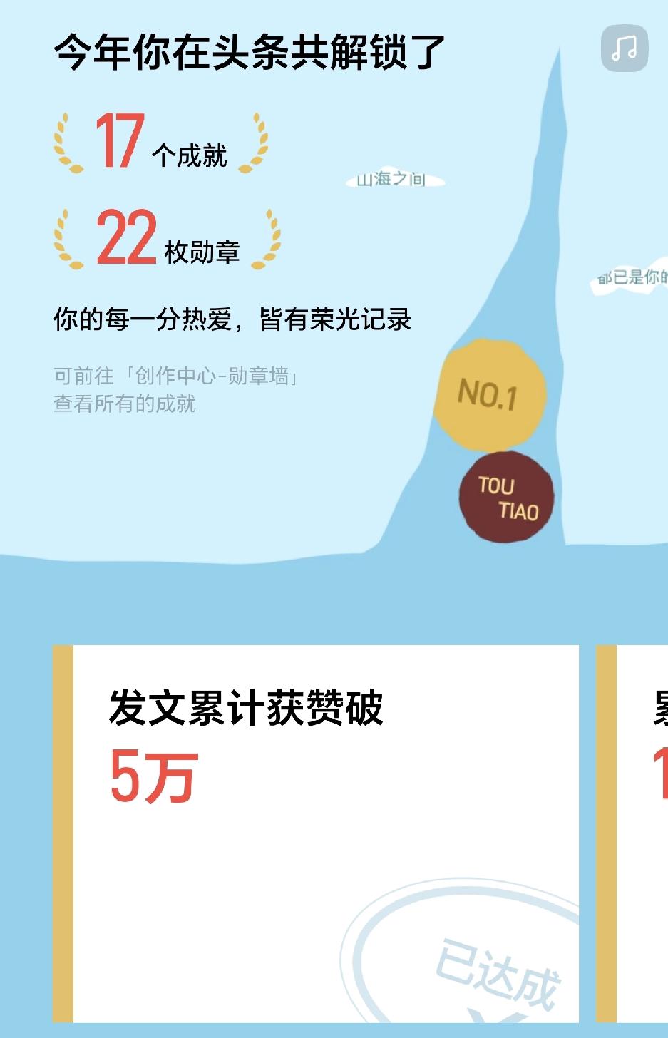到年底了,头条给我出了一个年终总结,不看不知道,原来我这么勤奋啊! 我的头衔是~热衷搞笑娱乐的百万流量师[捂脸],看起来有点高大上呢! 我在头条驻足331天,一年365天,我那20来天干啥去了呢[大笑] 17个成就,22枚勋章,嗯,成就不小,我都没觉得干了啥大事,就给了这么多荣誉哦[害羞]! 发布了1968篇作品,平均一天发表5篇头条,我都有点不敢相信了,我真的这么勤劳的吗[捂脸]! 其实今年写的头条比去年要少很多,因为这一年的流量实在是少得可怜,收益也就是去年一个零头而已,即便如此我仍然能够坚持下去,我都很佩服我自己了! 所有想在头条奋斗的朋友们,真理只有一个,坚持就是胜利,加油吧!
