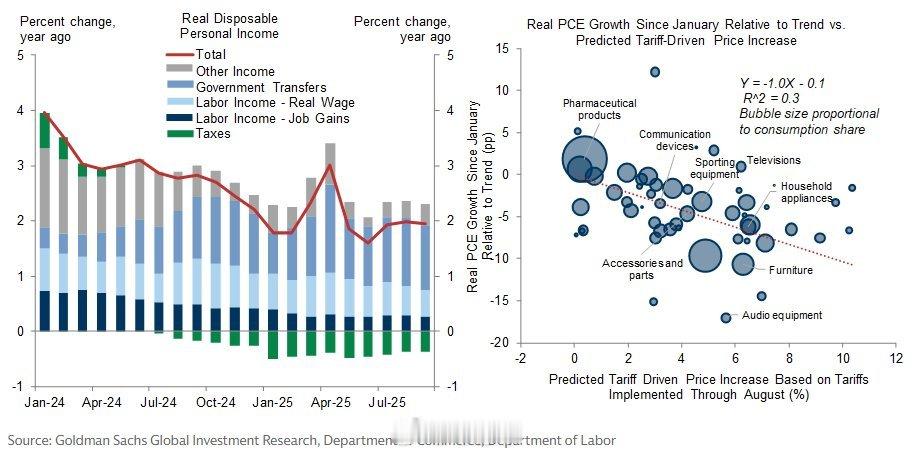 高盛:劳动收入增长放缓和关税相关商品价格上涨可能是导致2025年消费者支出增长放缓的主要原因