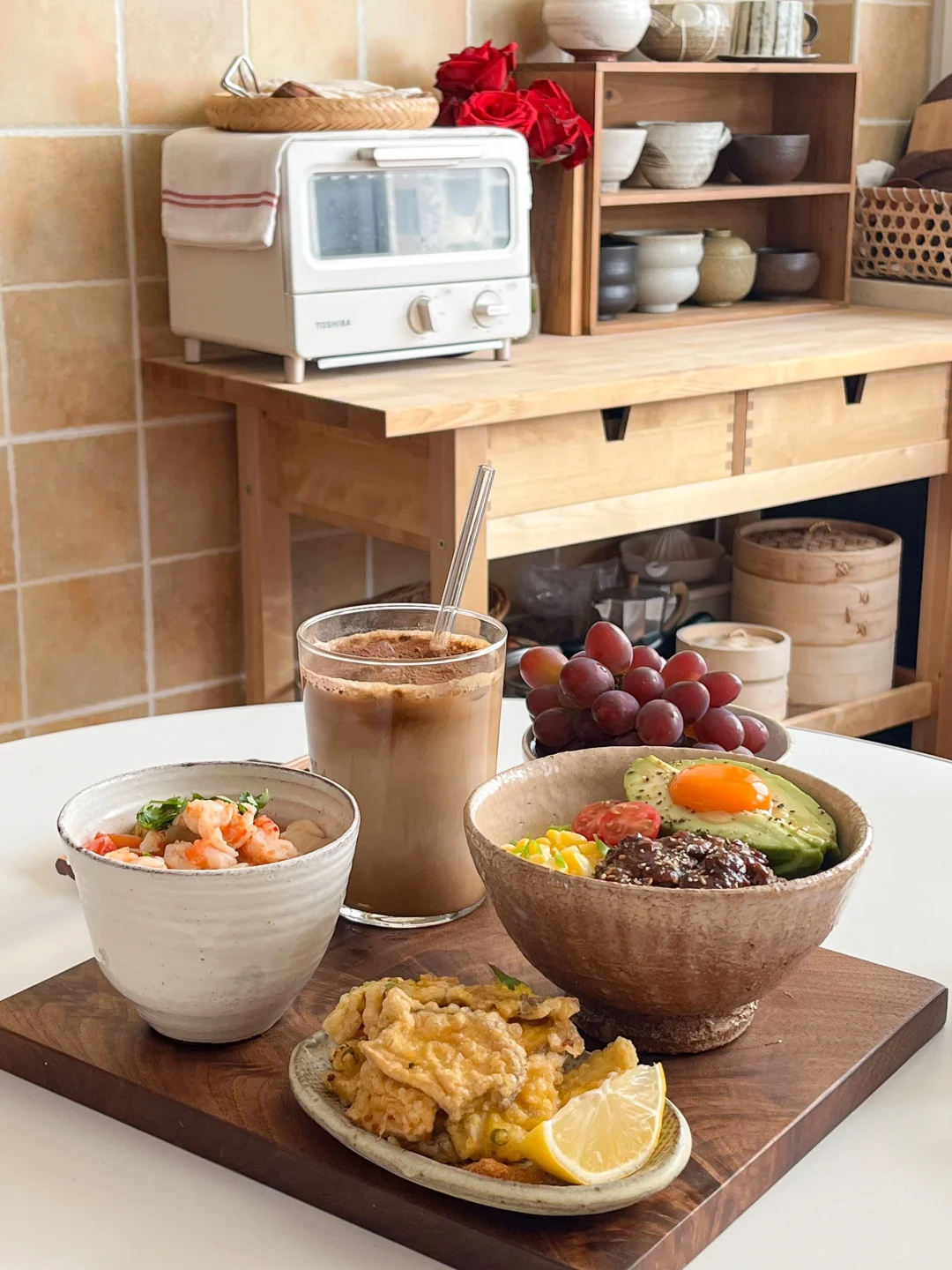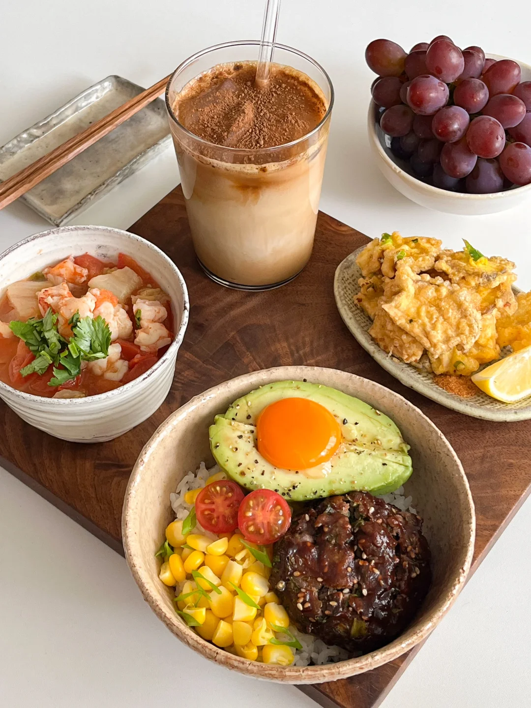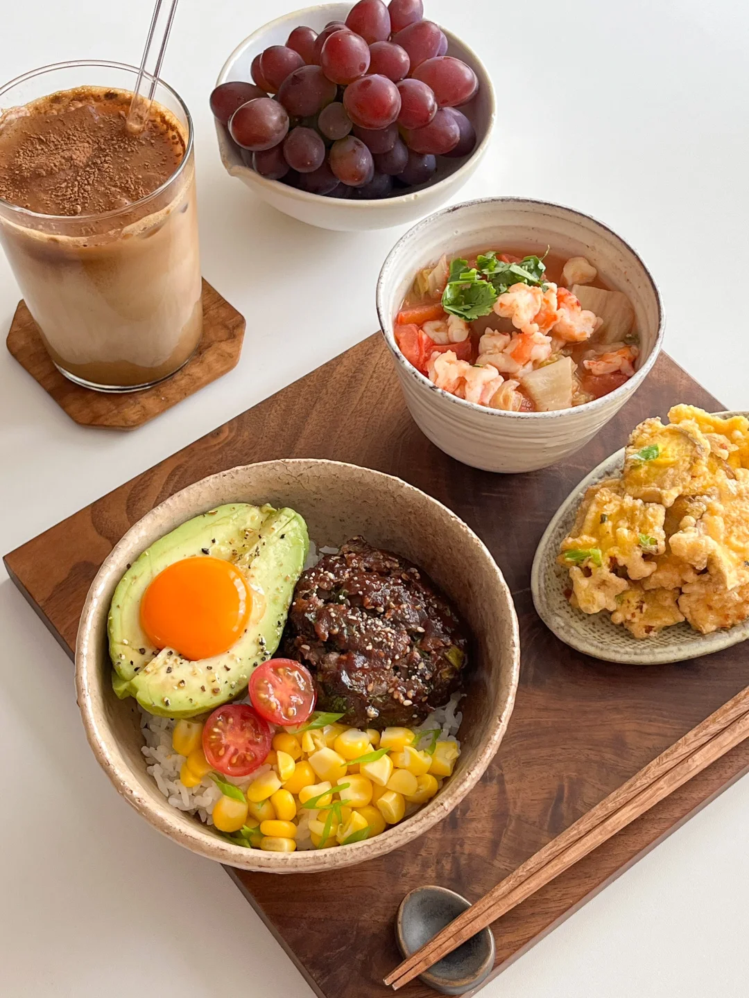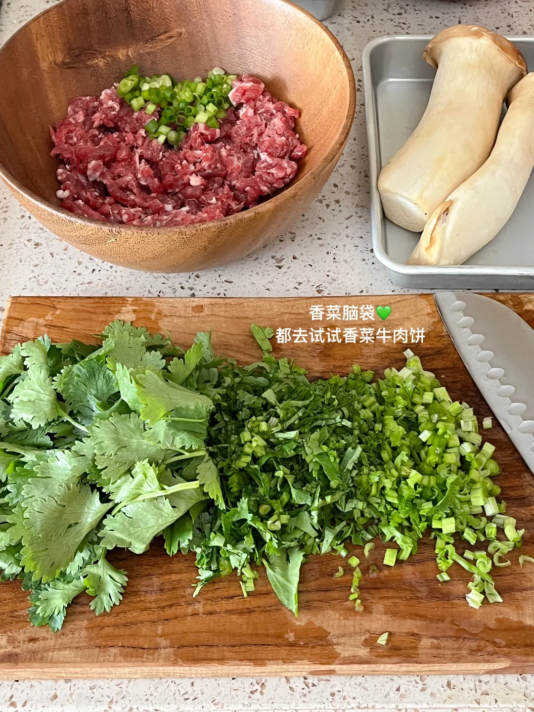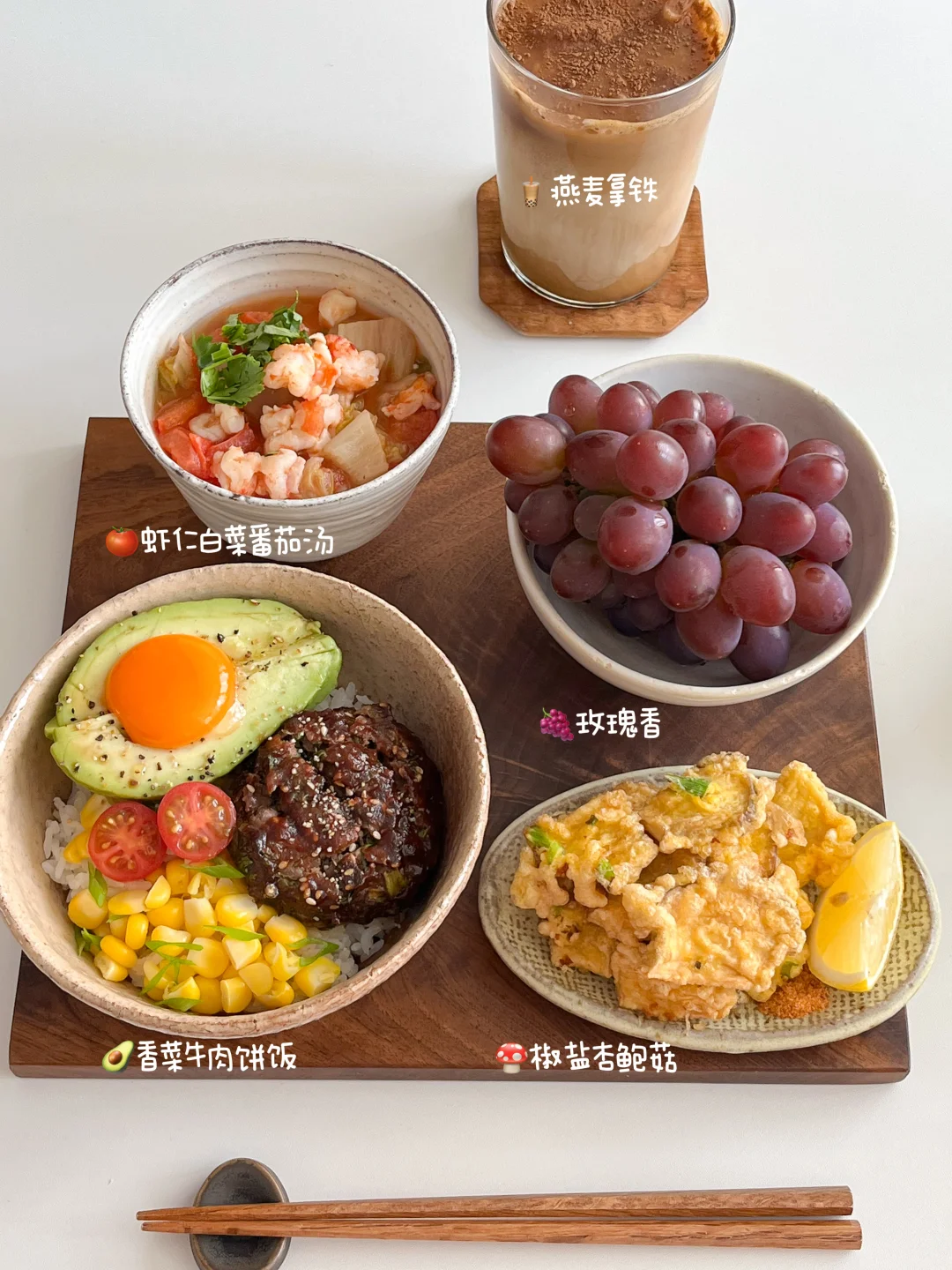 以前我是一口香菜都吃不下 突然有一天就爱上了 记得是在一家店里吃的香菜牛肉串串 香菜🌿+牛肉🥩=😍😍😍 今天的饭: 香菜牛肉饼盖饭🥑 椒盐杏鲍菇🍄 虾仁白菜番茄汤🍅 燕麦拿铁🧋 玫瑰香葡萄🍇