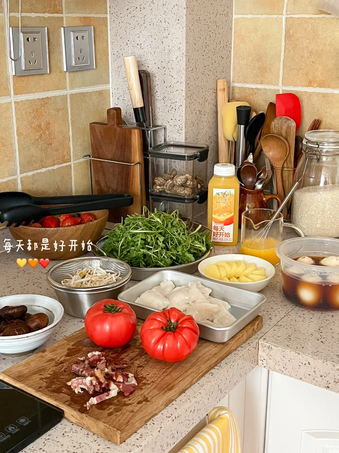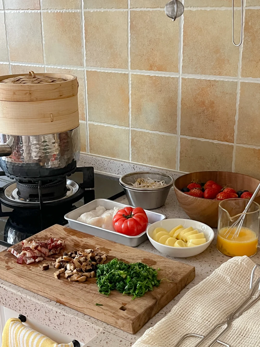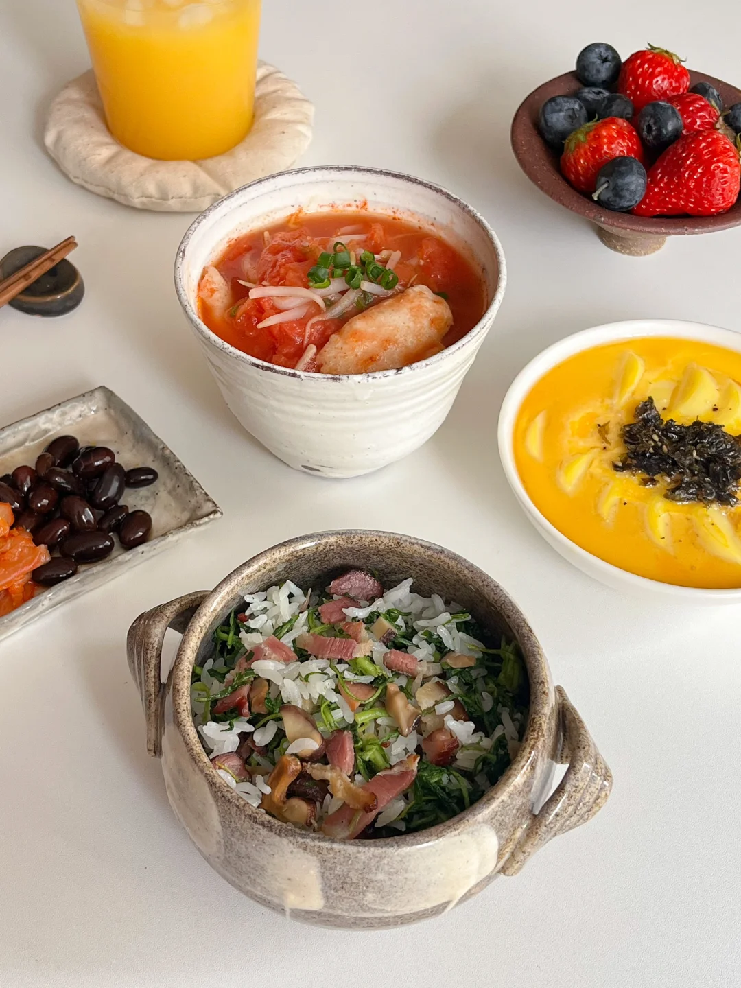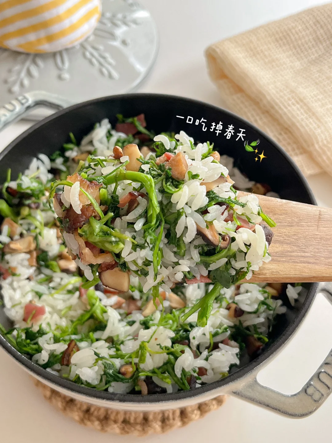 今天的饭: 荠菜香菇咸肉饭🍃 番茄豆芽鱼片汤🍅 日本豆腐蒸蛋🍳 冰橙汁🍊 草莓🍓蓝莓🫐 三月份的荠菜 鲜的很 🍃买了一小兜 回家做荠菜咸肉饭和荠菜馄饨 蒸米饭的时候加半勺猪油或花生油 米粒会更油润 粒粒分明 芥菜焯水 干香菇泡发以后全部切碎 咸肉切成细条 盐都不用放了 味道很足 香菇和咸肉、荠菜炒熟 放到煮好的米饭上 荠菜的清甜 咸肉的油脂香 混合一起 香的我能吃两碗!快去做吧~~