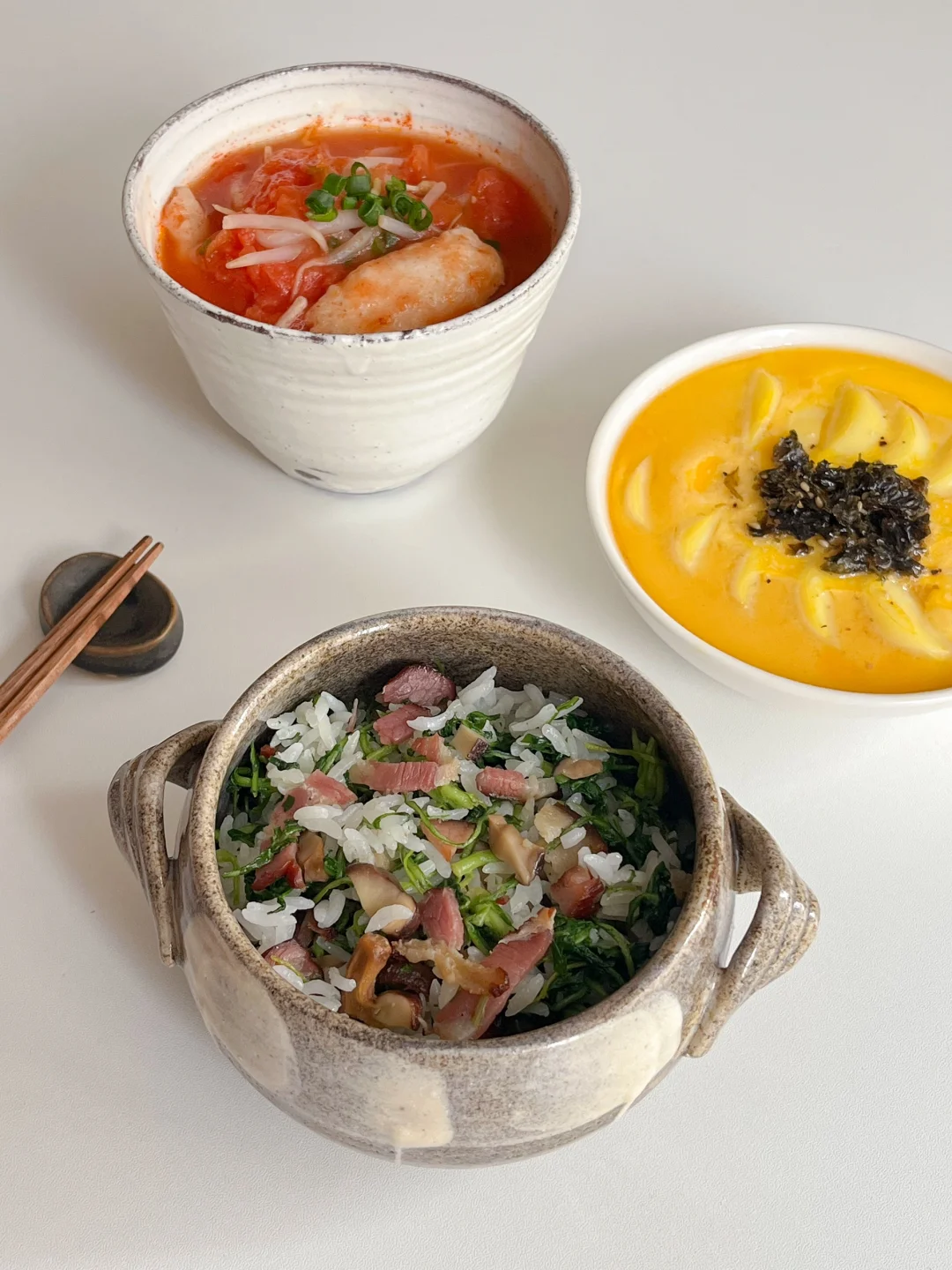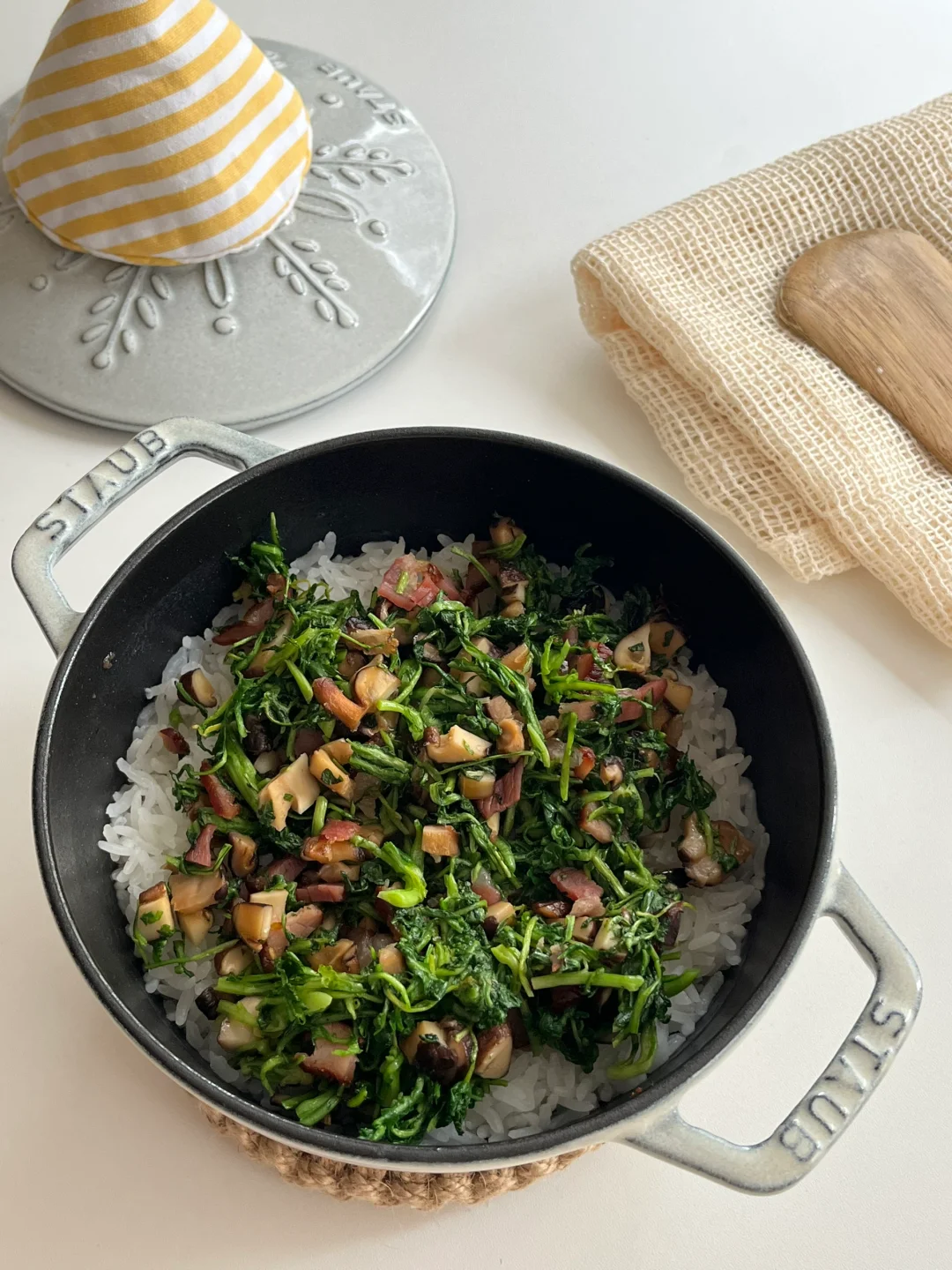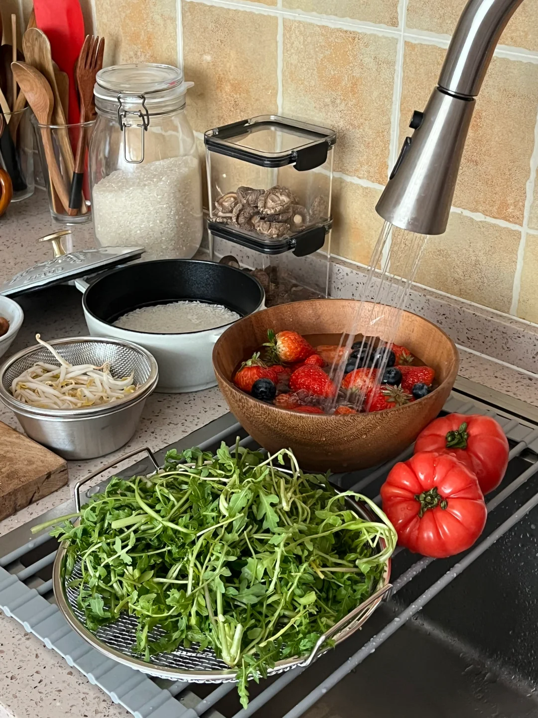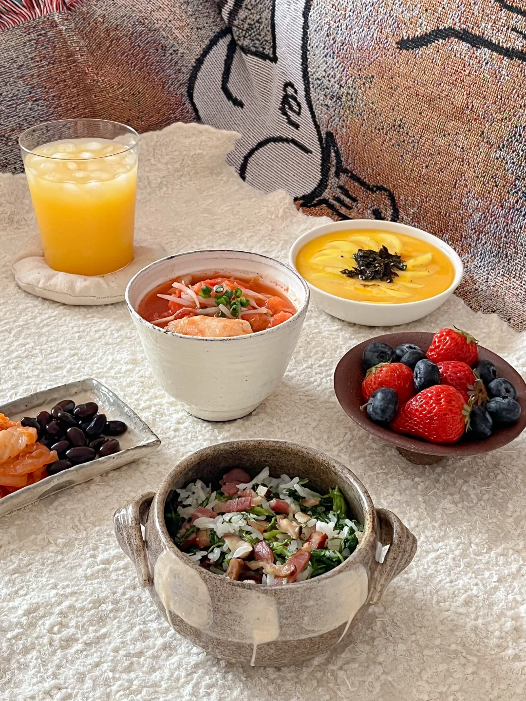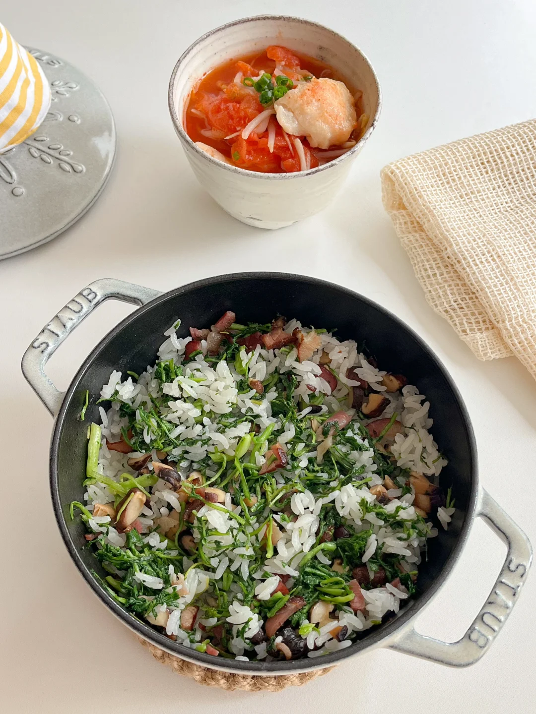 今天的饭: 荠菜香菇咸肉饭🍃 番茄豆芽鱼片汤🍅 日本豆腐蒸蛋🍳 冰橙汁🍊 草莓🍓蓝莓🫐 三月份的荠菜 鲜的很 🍃买了一小兜 回家做荠菜咸肉饭和荠菜馄饨 蒸米饭的时候加半勺猪油或花生油 米粒会更油润 粒粒分明 芥菜焯水 干香菇泡发以后全部切碎 咸肉切成细条 盐都不用放了 味道很足 香菇和咸肉、荠菜炒熟 放到煮好的米饭上 荠菜的清甜 咸肉的油脂香 混合一起 香的我能吃两碗!快去做吧~~