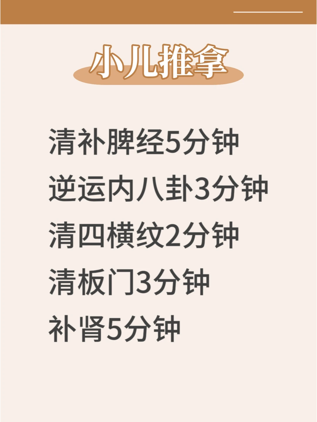 春天不仅是植物生长的黄金时节,万物皆如是!特别对儿童而言,这阶段是他们一年中成长发育的高速时期。 今天教大家一套小儿推拿的方法,让孩子们在春日里茁壮成长! [清单R]小儿推拿:清补月卑经5分钟,逆运内八卦3分钟,清四横纹2分钟,清板门3分钟,补肾5分钟。 [太阳R]这个增强月卑胃的小儿推拿组方的意义在于,清补月卑、逆运内八卦、清四横纹、清板门相配合可以健月卑和胃,促进食物的消化吸收;补肾经这里有助月卑阳以及强筋壮骨促进孩子的生长发育之意。 具体做法如图 上面的方法,在春季可以每天坚持给孩子推拿,促进消化吸收,提高抗病能力,为生长发育提供充足的能量!可以在睡前或者晨起的时候为孩子推拿。 罗大伦 育儿 小儿推拿 2025我的育儿关键词 春季养生 春捂