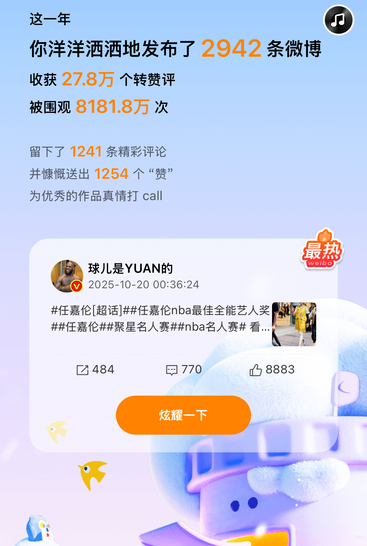 任嘉伦微博年度报告微博之夜微博年度报告,记录年度瞬间📝感谢嘉人