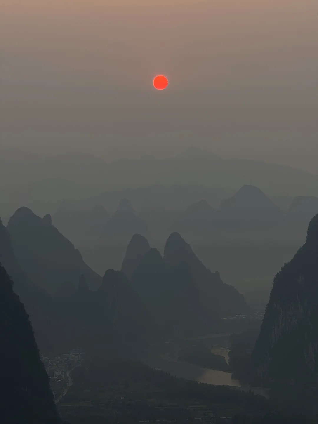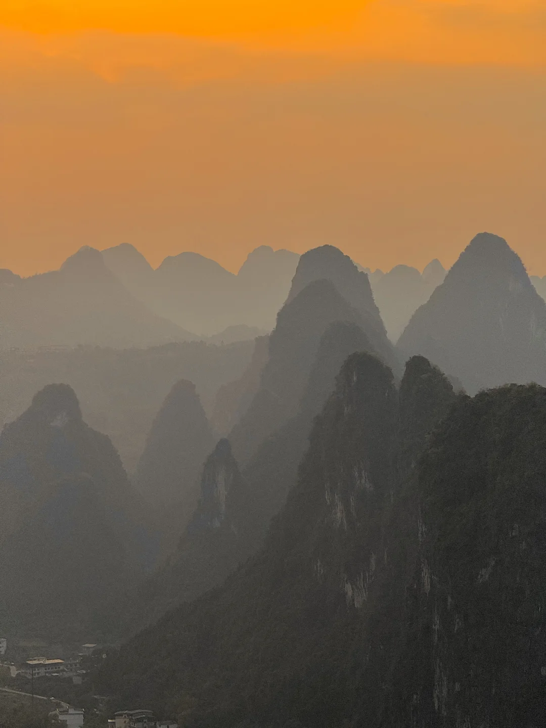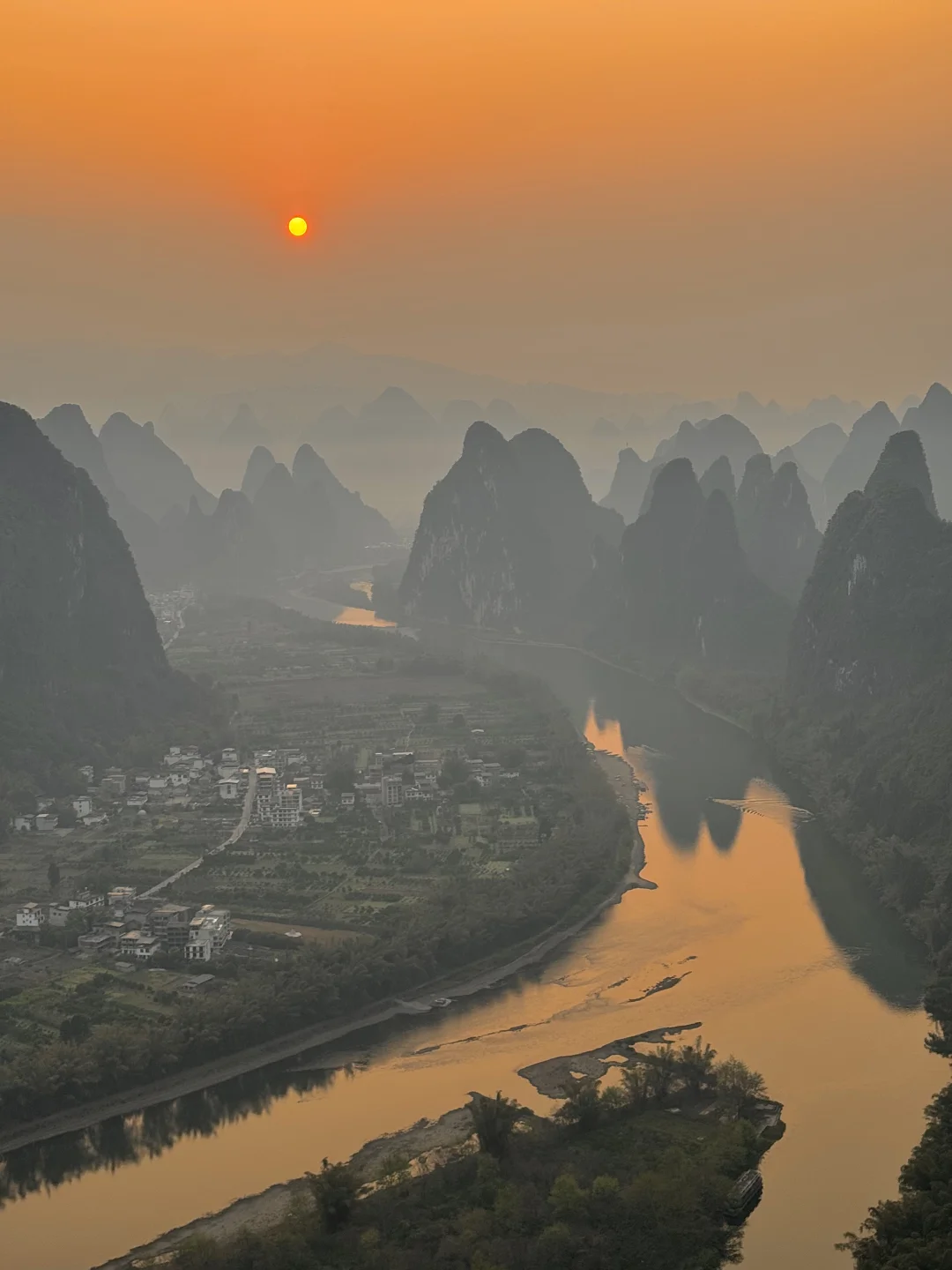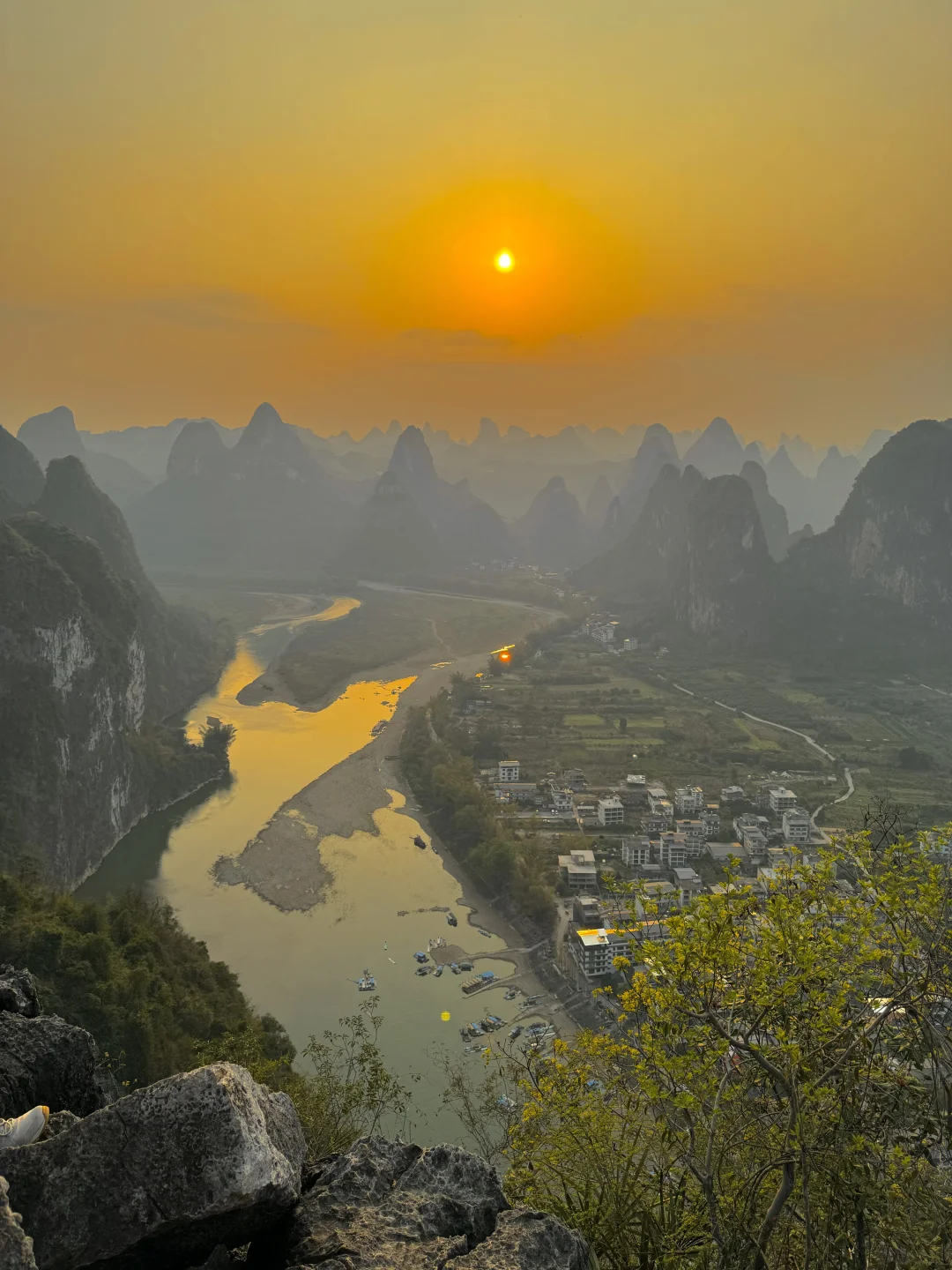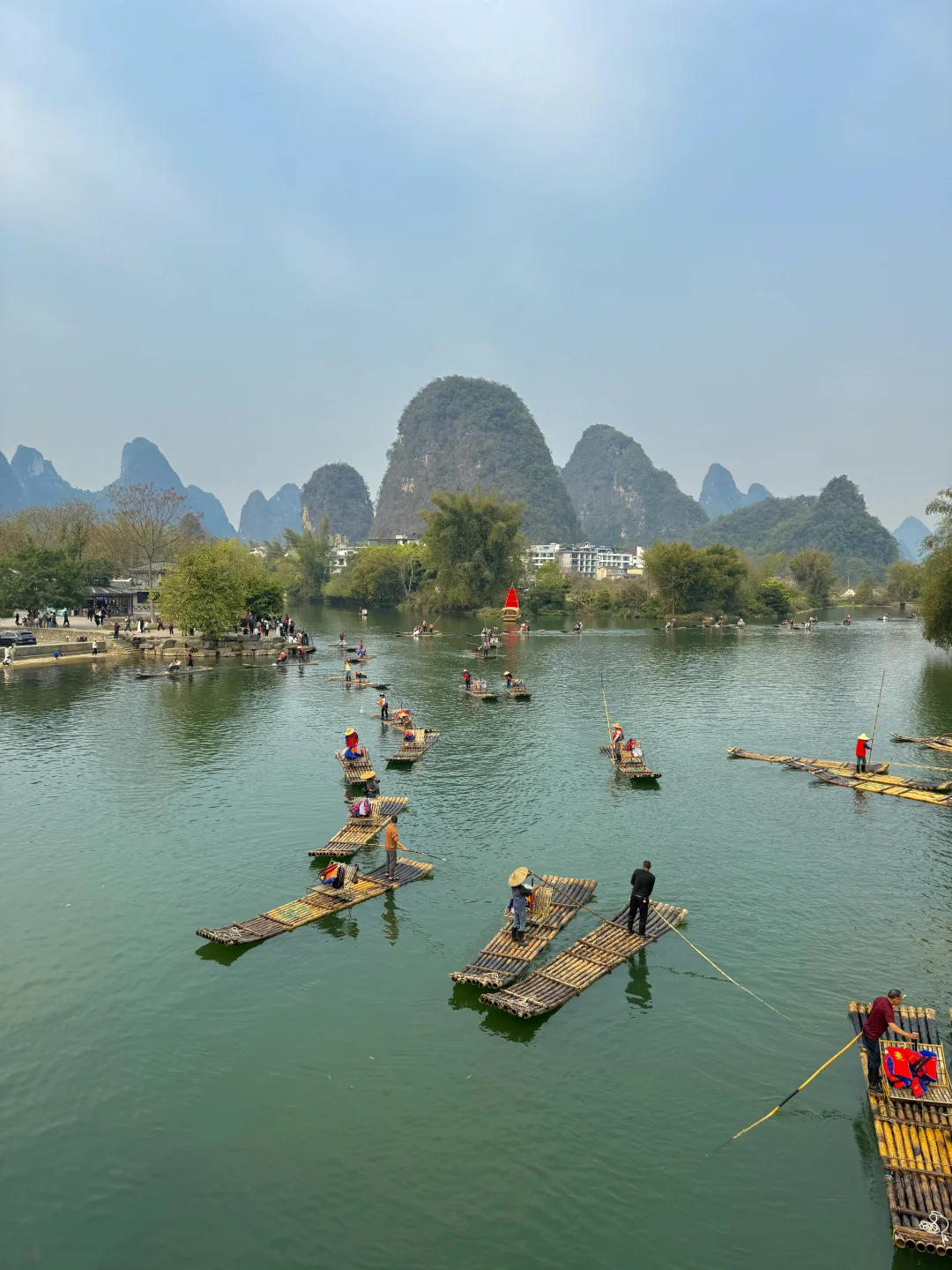 到达阳朔站➡️兴坪古镇➡️20元打卡地➡️漓江骑行➡️登山看日落➡️前往西街