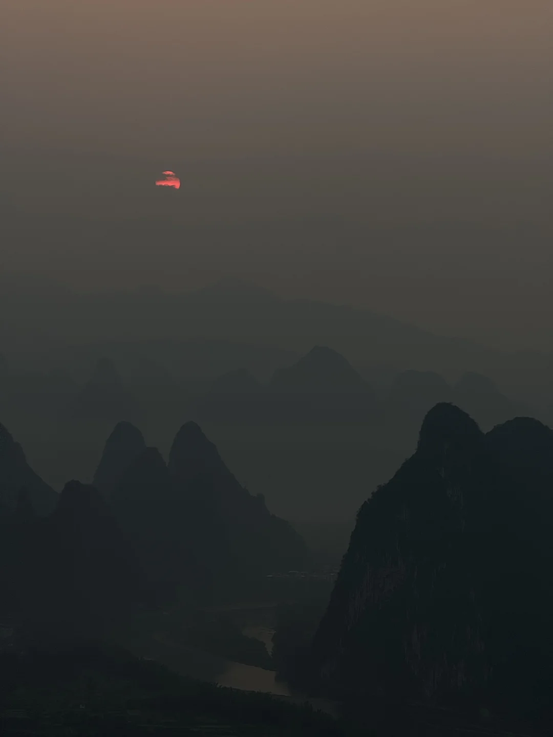 🏞️🏞️当喀斯特山峦在暮色中折叠成宣纸~