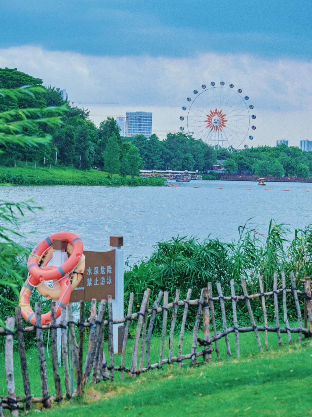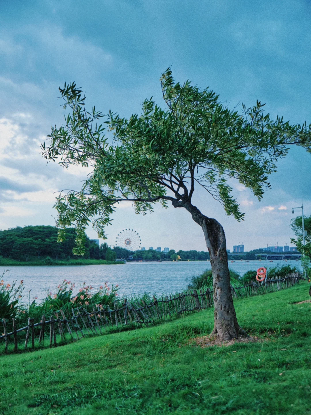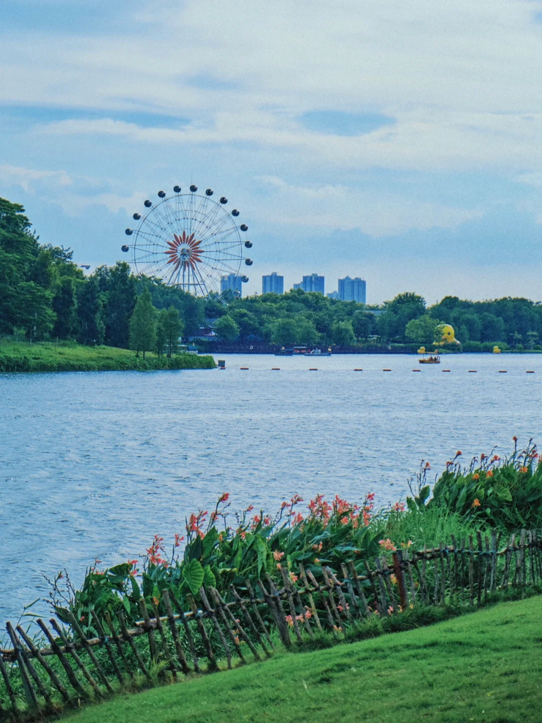 湖泊,杨柳,摩天轮以及超级大的草坪