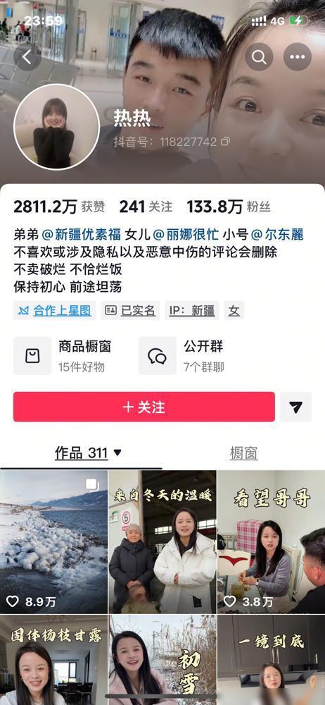新疆网红热热离婚了 新疆网红尤素福的姐姐离婚了,热热粉丝也138万,网络其实也没有那么好做。 看了真让人感慨。做网红表面风光,背后也是一地鸡毛。 热热这事挺典型的。为了拍视频,常年回不了家。家在乌鲁木齐,拍视频在伊犁妈妈家。来回跑,长期分居,感情能不出问题吗? 她老公在民政局拿着文件袋晃来晃去指责的样子,被镜头记录了下来。这画面挺扎心的。 公开资料显示,热热主要拍家庭美食和日常生活。内容温馨,但创作背后是分离。她孩子还小,女人又带孩子又做事业,太难了。 这不是个例。很多短视频创作者都面临类似困境。为了流量和生计,不得不牺牲家庭团聚的时间。尤其女性,社会对她们的要求往往更高。 既要经济独立,不想手心朝上。又要照顾好家庭,维护好婚姻。几头拉扯,最后可能哪头都没守住。 热热的138万粉丝,也算是个不小的网红了。可粉丝数换不来家庭的完整。流量和陪伴,有时候真是道选择题。 有人说她不该总拍家人。可接地气的内容就是观众爱看。这成了她的创作源泉,也成了家庭矛盾的导火索。挺矛盾的。 长期分居对任何夫妻都是考验。普通人尚且如此,网红的生活更不规律。熬夜剪辑、到处奔波,留给家人的时间所剩无几。 她老公的指责,或许也是积怨已久。但走到离婚这一步,双方肯定都有无奈。婚姻不是单方面付出就能维持的。 女人带孩子创业,辛苦是加倍的。热热的选择,代表了很多现代女性的困境。想要独立,又渴望家庭温暖,往往难以两全。 这件事也给其他内容创作者提了个醒。平衡事业和家庭,是门永远的学问。不能为了屏幕前的热闹,丢了身边实实在在的温度。 生活终究是自己的。流量会过去,粉丝会更新,但家人和孩子才是长久的陪伴。事业成功固然重要,家庭幸福更是无价之宝。 希望热热以后的路能走得顺一些。单亲妈妈不容易,且行且珍惜。也希望大家对网红少些滤镜,多些理解。他们展现的美好背后,也有普通人的辛酸和取舍。 任何事业都不应以彻底牺牲家庭为代价。找到平衡点,或许才是真正的智慧。毕竟,万家灯火,总有一盏是为家人而留的。 MCN双量进阶计划