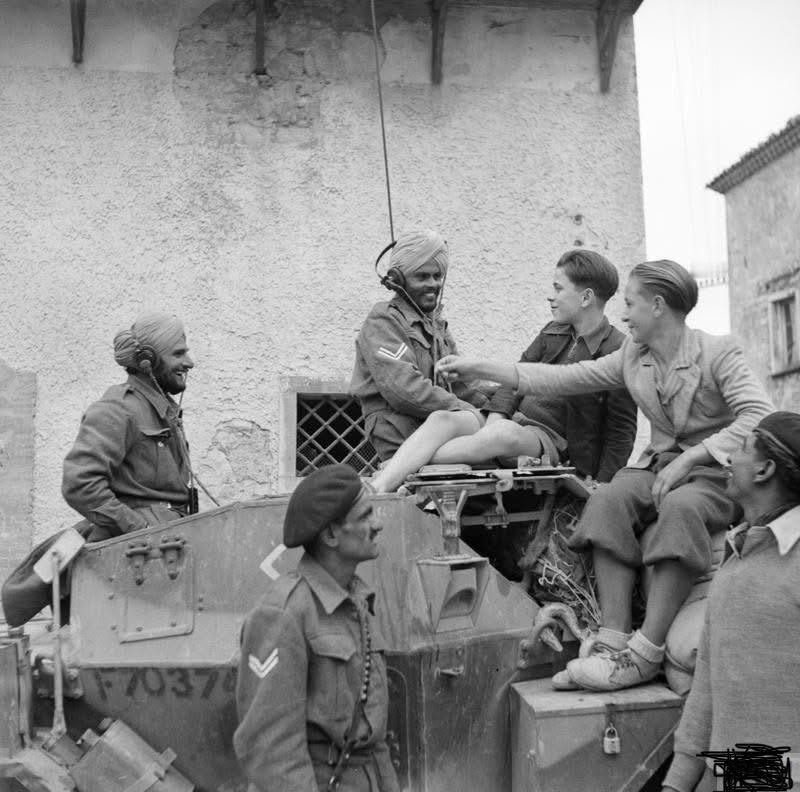 二战盟军意大利战场作战真实历史影像! 挑起战事的意大利军队却几乎没有存在感,整个二战期间,就打赢了埃塞俄比亚、阿尔巴尼亚两个国家,连侵略希腊都被反杀到溃不成军。不过意大利人嗅觉很灵敏,早在1943年国王就出面罢免了墨索里尼,倒向盟国…… 虽说后续墨索里尼被德国伞兵捞了出来在南部建立了傀儡政权,继续对抗盟军。但好歹意大利正统势力成功找对了边。跟一战时期如出一辙,战后摇身一变就是妥妥的战胜国! 图一:1944年,英属印度军队的锡克族士兵正穿过卡西诺郊外已被炸弹摧毁殆尽的建筑残骸。 图二:1944年6月初,罗马城外,1名美国大兵正肩扛巴祖卡火箭筒瞄准中。 图三:1944年3月,卡西诺战役期间,英联邦新西兰军队士兵正在作战间隙休憩。 图四:1944年3月,拉齐奥科里镇,瘫痪在路边的虎式坦克。该战车履带已脱落,应该是在修理过程中,盟军突然逼近,纳粹德军仓促遗弃的。 图五:1944年,圣莱昂纳多地区,英联邦加拿大卡尔加里团正在山间行进中,那辆谢尔曼坦克怎么看着那么小? 图六:1944年6底,菲库莱附近,英军士兵站在1辆被德军遗弃的法国194GPF自行火炮上留下摆拍照。 图七:1943年12月,兰恰诺与奥索尼亚之间,英属印度第6皇家边防军的1辆通用运载车及迫击炮小组正在警戒中,准备随时迎战。 图八:1943年11月7日,英属印度装甲部队第6康诺公爵枪骑兵团的侦察车乘员正与当地年轻人交谈。此时,他们正在向桑格罗河推进途中。 图九:1944年10月,索里沃利,英属印度第10师第44/13反坦克团士兵正在操作1门17磅反坦克炮轰击对面轴心国军队阵地。 图十:为增强正面装甲防护能力,美军M4谢尔曼坦克甲板上被堆满了沙袋。这种改装在1944年后的意大利尤为常见,原因是为了近距离对抗德军的反坦克炮与“铁拳”反坦克火箭筒。 图十一:1943年12月14日,美军工程兵正在绘制路标,其以漫画形式绘制路标,诙谐又轻快。相信这样的路标更令人印象深刻,且能让盟军士兵在紧张的战斗之余有些许放松。 图十二:1943年10月1日,英军第1国王龙骑兵卫队的戴姆勒侦察车停泊在那不勒斯市政厅前。此时,墨索里尼已被国王逮捕,意大利已倒戈,故而英军能长驱直入该市。 图十三:1944年5月13日,刚结束战斗的美军士兵们在卡西诺圣安杰洛教堂的废墟中清理武器。 图十四:1944年9月12日,隶属于英国皇家炮兵第75重炮团的155毫米“长汤姆”火炮,正被拖曳通过博尔戈圣洛伦佐地区狭窄的街巷。 图十五:1943年10月27日,英国皇家伯克郡团第10营的士兵正向卡利·里索尔塔高地进发。意大利跟希腊、巴尔干地区一样,皆是多山地形。 图十六:1944年5月27,奇斯泰尔纳,被美军第5集团军围困的德国士兵纷纷举手投降。美国大兵正在进行搜身,以防他们隐藏武器。这些德国士兵先前对盟军的进攻进行了顽强,直至弹药耗尽才缴械。 图十七:1943年12月17日,英国皇家燧发枪团第1营步兵正在卡达里的一条街道上与德军进行巷战。老照片 二战 武器装备 意大利 结语:欢迎朋友们关注、点赞,评论区发表宝贵观点与建议,并将来自己感兴趣的历史事件留言下来。我将尽力搜集资料,整理成篇,与您共勉! 您的慷慨支持是我持续创作更新的永续动力。文中常有时间地点不详或地名无法译出之状况,若您有案可查,请帮忙斧正补充!