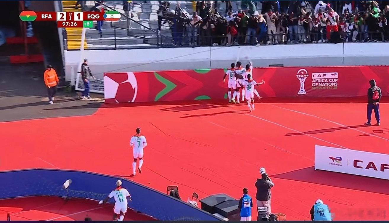第 85 分钟,少打一人的赤道几内亚抓住角球机会,由 9 号头球破门,1 比 0 领先布基纳法索。但伤停补时阶段,布基纳法索第 95 和第 98 分钟连进 2 球,最终以 2 比 1 逆转绝杀了赤道几内亚 。非洲杯是 24 队分成 6 组,每组的前 2 名和 4 个成绩最好的第 3 名晋级。布基纳法索世界排名第 62,赤道几内亚排名第 97,同组最强是阿尔及利亚,最差是世界排名第 118 的苏丹。赤道几内亚下一场对手就是苏丹。
