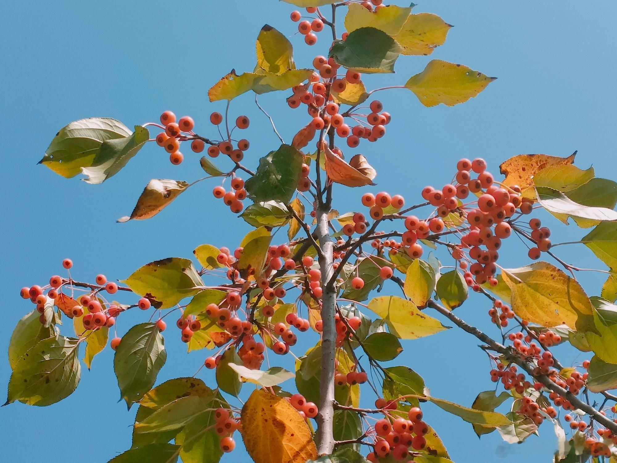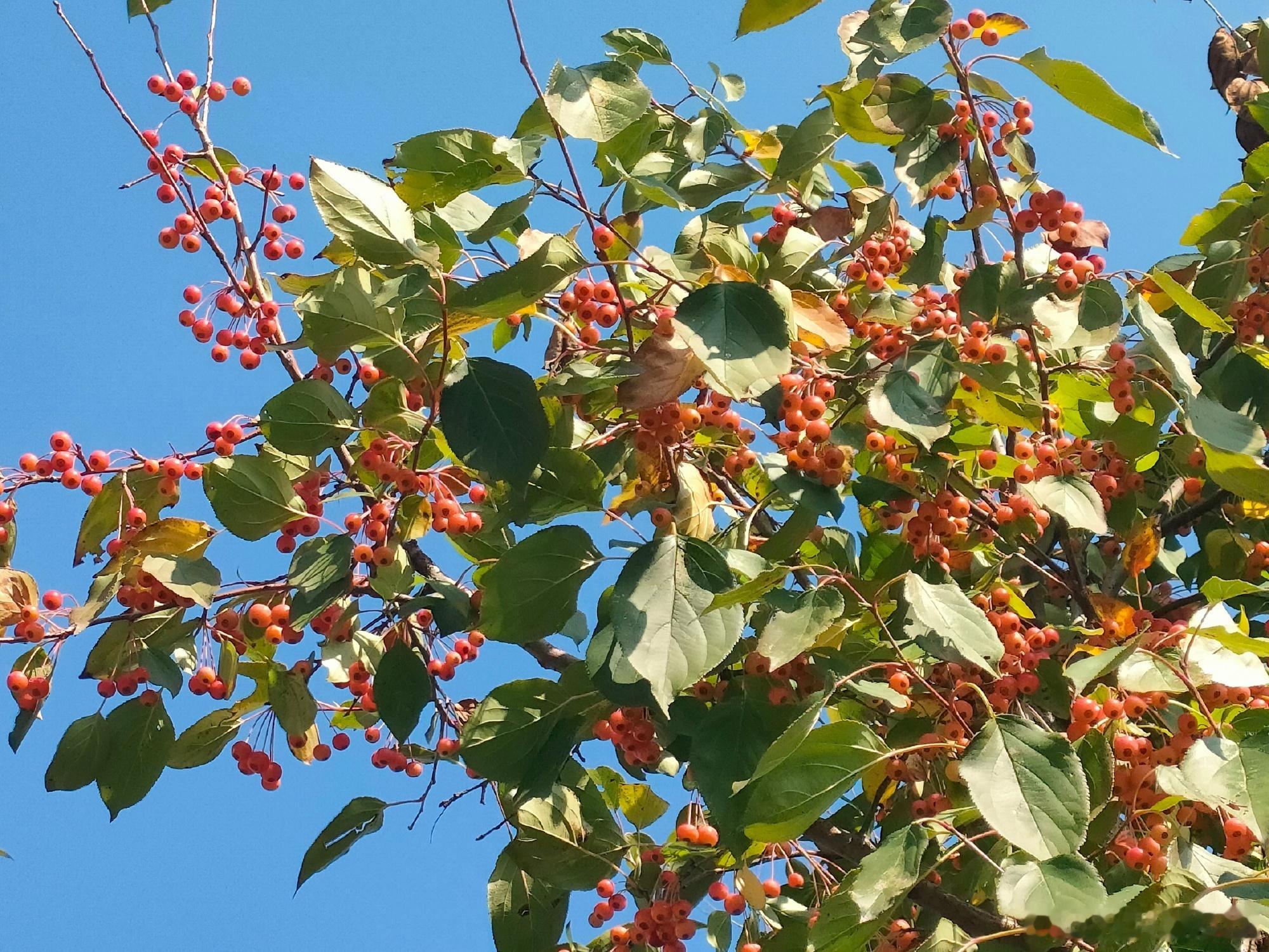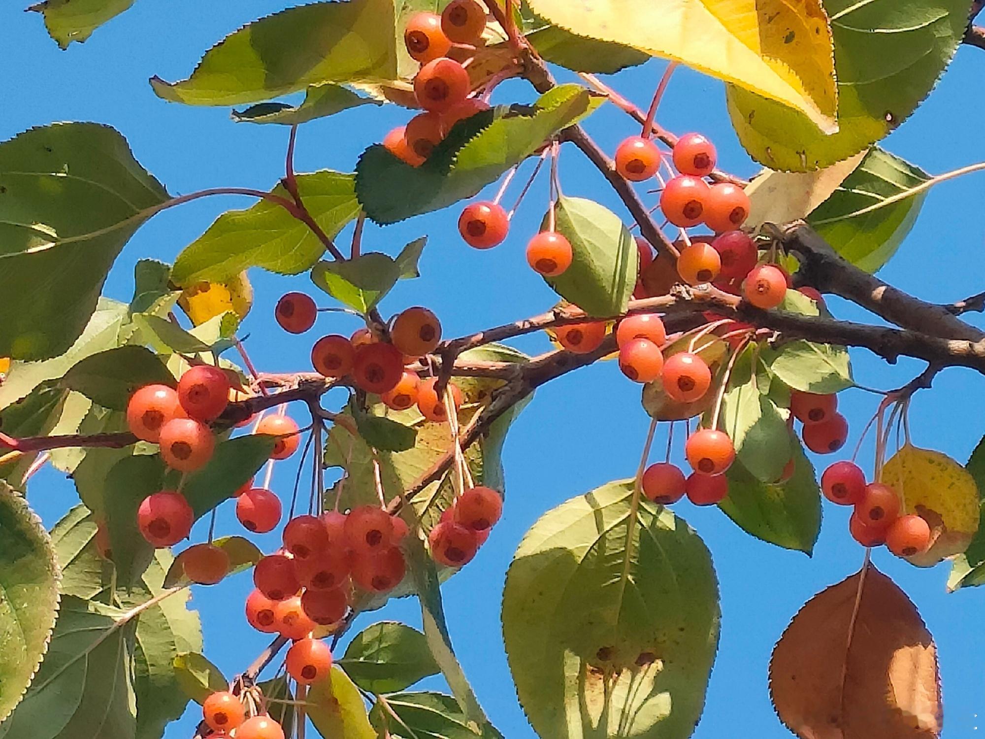 海棠 挂满树枝的海棠果,我们叫它棠梨子。