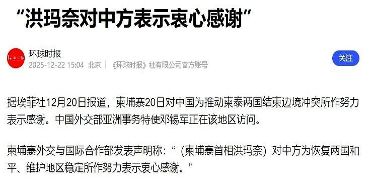 这事儿最有意思的地方在哪? 仗还没打完,眼看要输的那边,抢先站出来,对着全世界大喊一声:谢谢中国大哥来劝架! 泰国那边人都还没反应过来呢,柬埔寨这边已经感谢完了。 你说他急不急? 能不急吗。 人家泰国那边,F-16都骑脸输出了,把你的补给桥都给炸了,关键的战略高地也拿下了。你这边呢?说句扎心的大实话,空军几乎就是个摆设,拿头跟人家的制空权打。 拼家底,更没法看。人家GDP是你十多倍,人口是你四倍,每年军费开销也是你的十倍。 这仗怎么打?打到最后,吃亏的肯定是自己。 最要命的是,五十多万老百姓流离失所,没吃没喝没地方住。这才是压在心头最大的石头。再打下去,国都要被拖垮了。 所以,洪森父子心里门儿清。 这声“谢谢”,喊得快,喊得响,其实就是个姿态。 说白了,就是把中国架到那个位置上:大哥你看,我听你的话,我想要和平,现在就看你了,你得帮我跟对面说说,让他给我个台阶下啊。 他想要啥? 不是要打赢,也不是要争什么理,就是要一个“体面”。 泰国开出的停火条件,其实不苛刻。但谁先停火,谁就显得弱势,像认输。面子上挂不住。 柬埔寨就是希望中国能出面协调一下,在停火的说法上、方式上,找个双方都能接受的方案,让他能体面地把这场仗停下来,不用在国内民众面前丢脸。 这点小心思,我们当然懂。 但这就是大国的分量。我们不拉偏架,我们谁都不得罪,我们只是希望你们两家邻居别打了,好好过日子。 你先喊谢谢,是想多要点同情分。没问题。 但我们最终的目的,是让枪声停下来,让那五十多万颠沛流离的人,能早点回家。 这,比谁输谁赢、谁有没有面子,重要多了。
