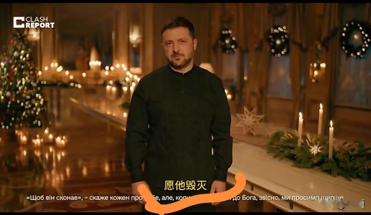 乌克兰总统泽连斯基发表圣诞致辞,在向民众送上节日祝福的同时,以极具冲击力的表述传递对抗立场,称“乌克兰人同有一个梦想,向众生寄以共同祈愿:愿他毁灭”,其言论被外媒解读为针对俄罗斯总统普京的直接表态。