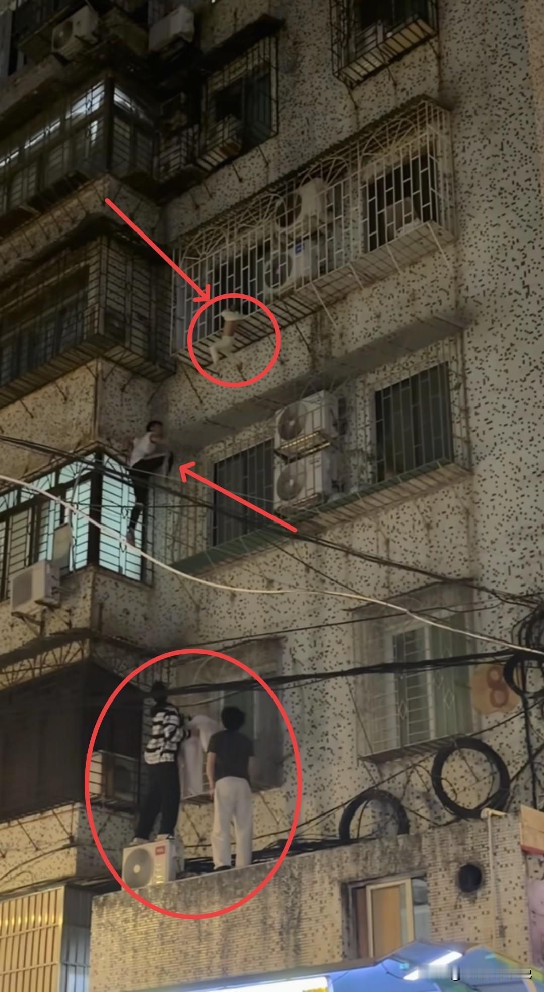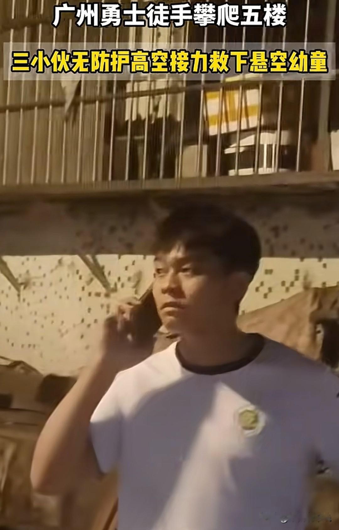 发出来,必须让全国人民都知道这三个人!就在12月24日晚,广州市一老旧小区发生的这一幕让所有人都看红了眼! 当天晚上,一老旧小区楼下的路人被嗷嗷地哭喊声惊动,抬头望去竟然是一个穿着单衣的婴幼儿,孩子双脚已经悬空,脖子被卡在防盗网上,他努力挣扎着试图爬回去,可不管他怎么努力也无济于事,于是发出了阵阵尖叫和哭声,下面路人听得心都捏紧了,一时间谁也不敢轻举妄动! 这时一个白衣小伙站了出来,在没有任何保护措施的情况下,他顺着一楼的防盗网开始往上爬,接着又一个穿条纹衣服的小伙和一个穿黑色衣服的小伙跟着往上爬,三个小伙子就这样展开了一场生死救援,当第一个白衣小伙成功托举到孩子的时候,众人悬着的心终于放下了,周围也响起了赞叹和掌声! 这三人虽然互不相识,他们施救、接应、兜底却配合默契,当时事发的房间并没有亮着灯,也未见监护人,情况紧急,再拖下去后果不堪设想,幸亏三人成功将孩子托举回了房间,同心协力的救下了一条生命,从而拯救了一个家庭! 刚好12月24日是平安夜,以前革命先烈护我们平安,这个夜晚、无数个这样的夜晚,都有人继承着这种精神,守护着他人的平安!这样的年轻人值得大家为他们鼓掌!