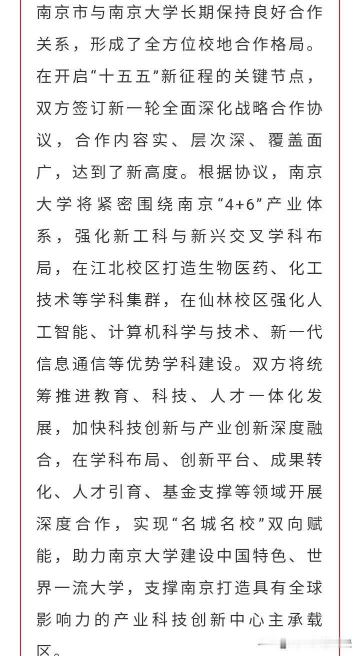 实锤了,南京大学虽然在苏州建有校区,但心还是在南京,近日南京大学和南京签约了战略合作协议,南大将在仙林校区强化人工智能、计算机科学与技术等,在江北校区发展生物医药和化工技术,而这些技术都是南京在发展中急缺的技术,其实南大早就和南京深度捆绑在一起了,谁都离不开谁,南大和南京是相互成就。 目前南大的主校区还是在南京,而且有很多南大教师不愿意去苏州,所以苏州校区那边大多招的是新教师,毕竟南大的根在南京。