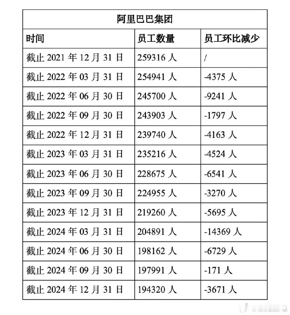 阿里Ai的C端落后太多,即便是疯狂投流,也无法抗衡豆包和元宝,这么多年员工首次增长,五年来阿里5年瘦身12万人,如今和腾讯字节差不多。这5年,5年骤降13万人,2021年峰值25.9万人,今年最低12.4万人,现在12.7万人。这算什么水平?🏢互联网企业中第一梯队(50万以上)·京东:约57.1万名员工第二梯队(10万-20万)· 阿里巴巴:12.7万人(截至2025年9月)· 腾讯:约11.1万人,或在11.5万人左右· 字节跳动:全球员工约10-15万人· 美团:约10.9万人· 贝壳:约13.5万人第三梯队(10万以下)· 拼多多:约2.3万人· 百度:约3.6万人· 快手:约2.5万人· 网易:约2.6万人📱 手机/硬件企业· 华为:员工总数在18万至20.8万之间,规模与阿里相当或略多。· 小米:截至2025年6月,拥有约4.9万名全职员工。· 其他:如中兴约6.8万人,海康威视约6.0万人,员工数均不及阿里的一半。🚗 造车新势力:处于同一量级· 理想汽车:根据《财富》数据,雇员数约为32,248人。· 小米集团:员工约4.9万人,但其智能汽车业务人员包含在内。· 传统车企:作为参考,富士康在华制造业员工超过45万人,大众在华员工超9万人,规模仍然庞大,比亚迪90万员工。1. 远超大多数纯互联网公司(仅次于京东)和手机硬件企业。2. 与华为、腾讯、字节跳动等综合型科技巨头处于同一量级。3. 明显多于造车新势力,但已不属于数量级上的差距。终究,阿里的员工增量不能靠那些零售,只能靠Ai,毕竟阿里在Ai的C端落后太多了。