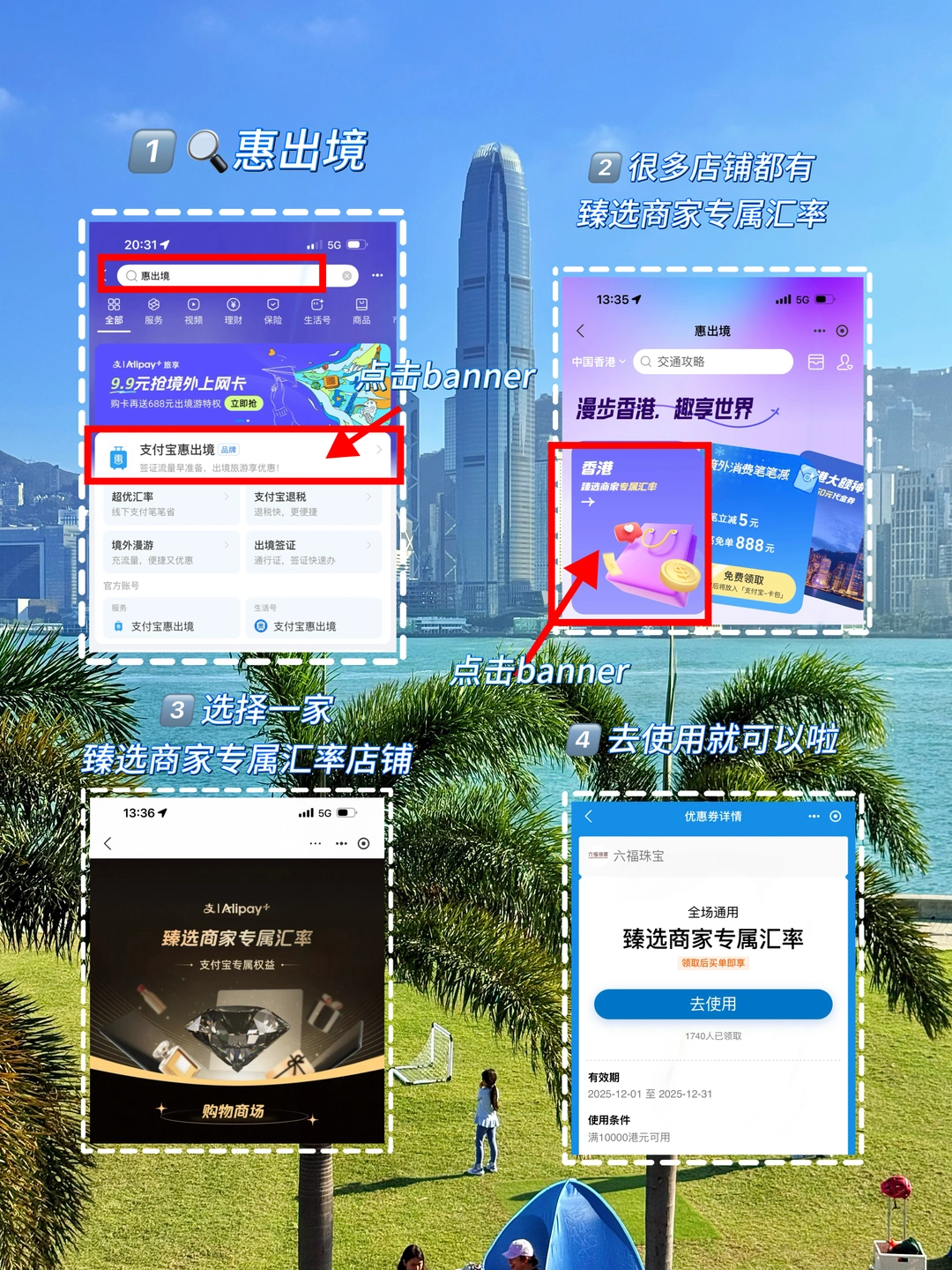 香港旅游 香港攻略 臻选旅游专属攻略 ⽀付宝汇率 ⽀付宝惠出境 出境就⽤⽀付宝 臻选商家专属汇率