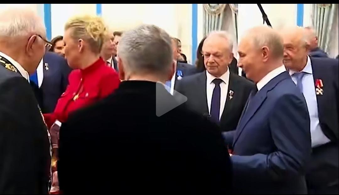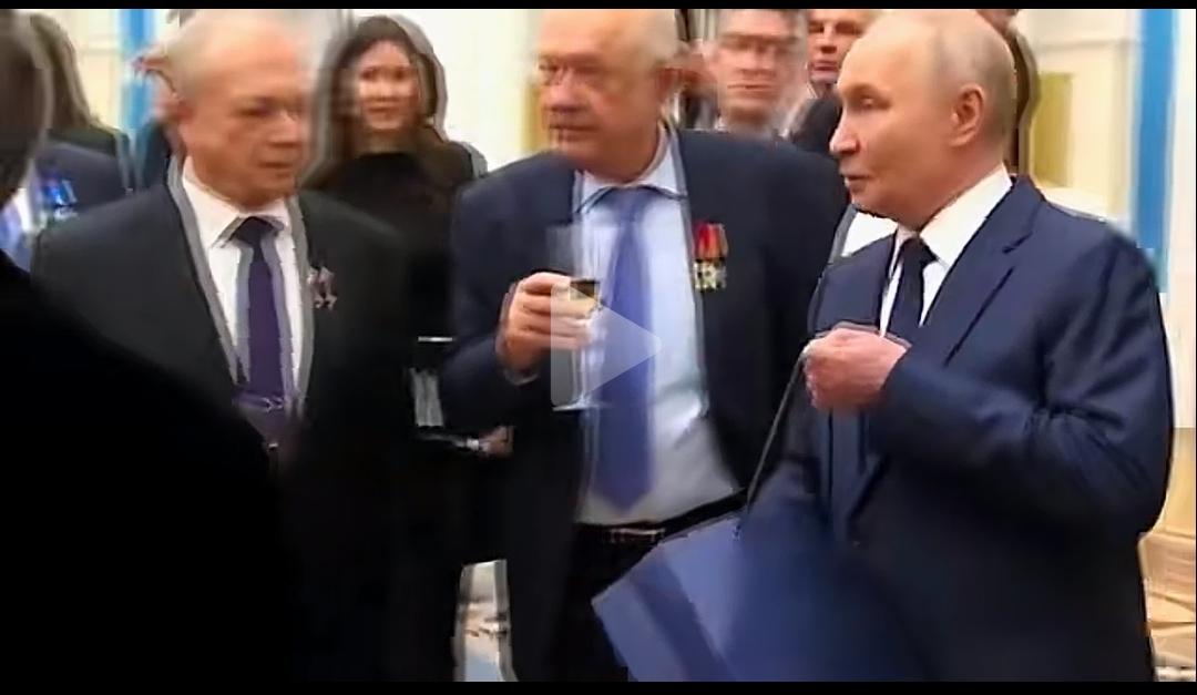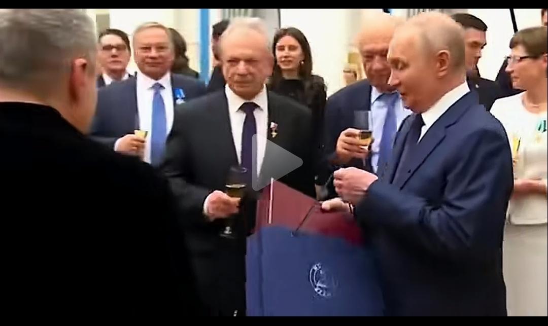这个场景太有喜感了。这个女人过50岁生日。普京手提纸袋穿过人群,当众给她送上一份