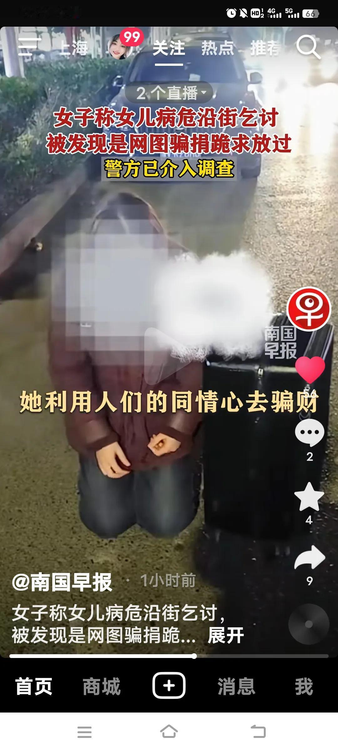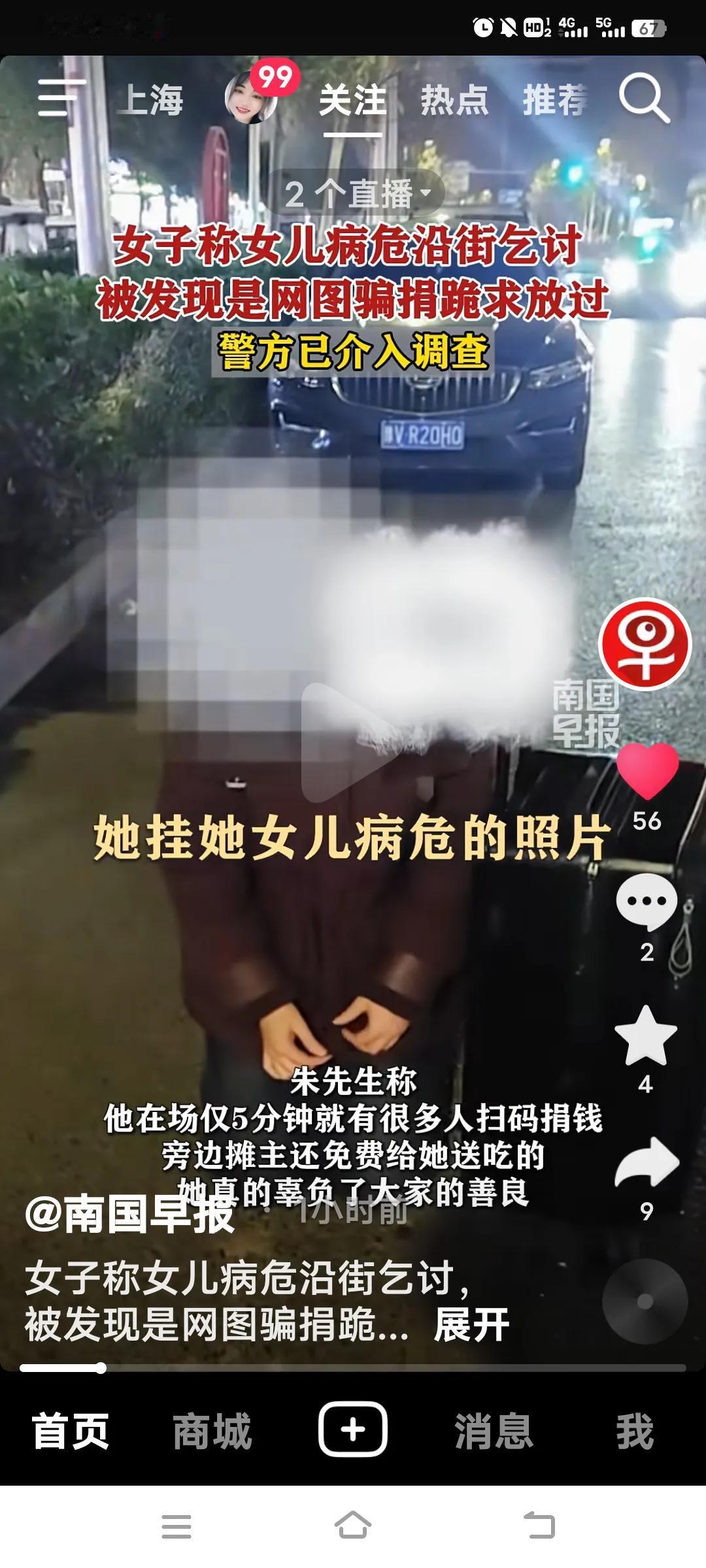 如今,街头乞讨骗局令人防不胜防。12月24日,在河南郑州,一名女子拿着“网图孩子重病”的图片乞讨,声称自己孩子病重,急需医疗费。不少好心人纷纷扫码捐款,旁边的摊主还免费给她拿食物。 然而,她的骗局被一名男子当场揭穿。男子发现照片是几年前的网图,愤怒地斥责女子用别人孩子的照片骗钱。女子被识破后,跪地乞求別报警,拎起皮箱匆匆逃走。 她的行为实在是辜负了大家的一片好心。目前,警方已介入调查。生活困难时乞讨本无可厚非,但绝不能用别人孩子的照片行骗。像这样的人,必须严惩不贷。 此前,在开原步行街,也有年轻女子扮成贫寒学生乞讨,哭诉家庭不幸,希望路人施舍。当好心人询问时,她低头不语,一旦被问到关键问题,便立刻溜走。这些骗子装可怜博取同情,实际上生活或许比我们还好。 大家在外时,要谨慎付出爱心,别让善良被人利用。 流浪乞讨人 马路上的骗局 乞丐街头乞讨 乞讨 城市乞讨