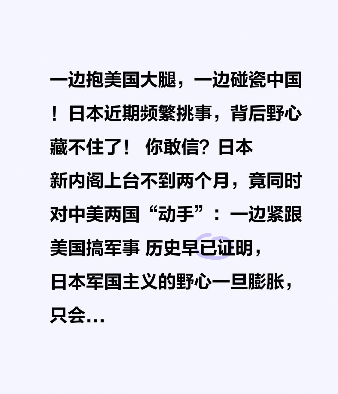 一边抱美国大腿,一边碰瓷中国!日本近期频繁挑事,背后野心藏不住了! 你敢信?
