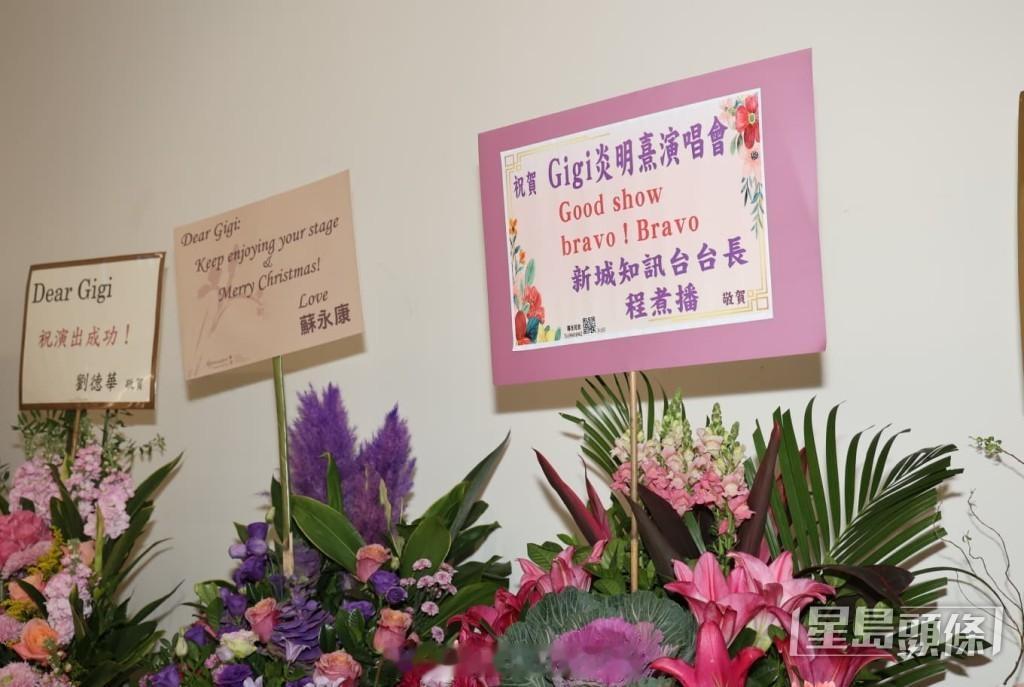 星岛:炎明熹离巢TVB后首开演唱会 刘德华容祖儿杨千嬅等力撑 TVB视帝现身观众席炎明熹(Gigi)昨晚(24日)将在亚洲国际博览馆举行《风之旅 My Voyage Goes On Live》演唱会,今次是她离巢TVB后首个演唱会,会场外设置三个打卡位予粉丝打卡,刘德华、杨千嬅、容祖儿、《声梦》导师Gin Lee及苏永康等送花篮祝“Good Show”、“演出成功”,而欧阳震华和袁文杰则现身观众席欣赏炎明熹演出。炎明熹“破冰”而出《风之旅 My Voyage Goes On Live》演唱会于晚上8点开始,舞台以T字设计,台上有冰山造型的布景,炎明熹站在舞台中央的唱出《风的形状》揭开序幕,但因炎明熹在薄纱后唱歌,所以只有人影未见真容,颇为特别。唱完后,遮掩炎明熹的薄纱揭开,身穿蓝色水晶宫廷礼服的炎明熹终于华丽现身,唱出《风灵物语》及《百年孤寂》,令人联想到因离巢被雪藏近一年的她现在“破冰”而出。粉丝“偷看”炎明熹换衫?状态大勇的炎明熹一连唱出多首歌曲,之后她换上白色毛毛裙继续演出。唱了多首歌后,炎明熹终于开口,她先祝大家圣诞快乐,又指今天是平安夜,所以祝大家平安,然后她更问粉丝刚才她换衫是否看得清楚?当有人答清楚时,她即搞笑地叫“Oh no!”炎明熹又感谢造型师和设计师Kit Wan帮她赶制衣服,又表示等有再大点的舞台时再穿到Kit Wan老师的衫。