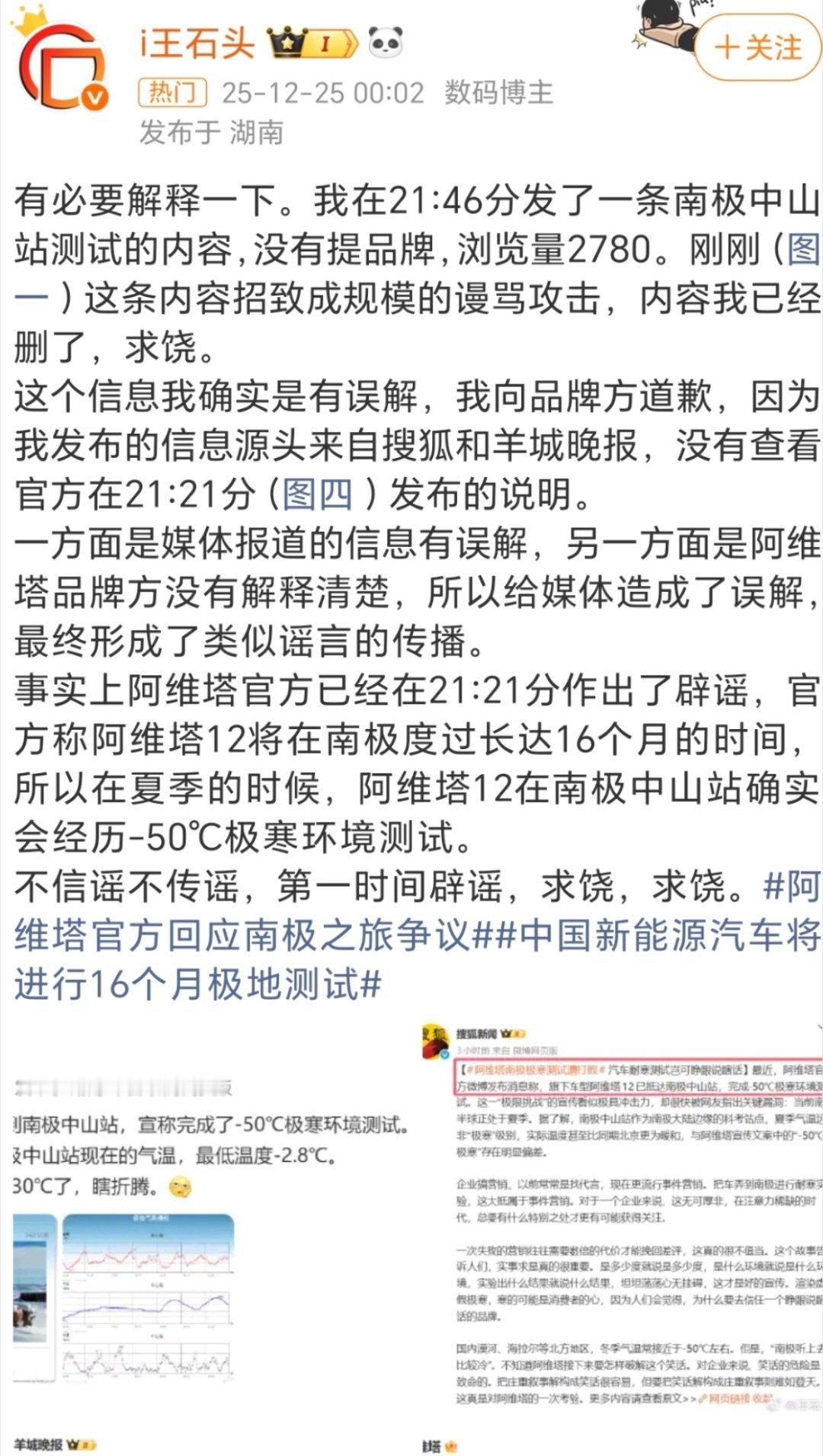 阿维塔官方回应南极之旅争议看了一下就是有博主质疑阿维塔极寒测试有问题,但阿维塔出来解释,博主也出来道歉了,个人看来没什么问题,只能说大家现在对营销比较敏感