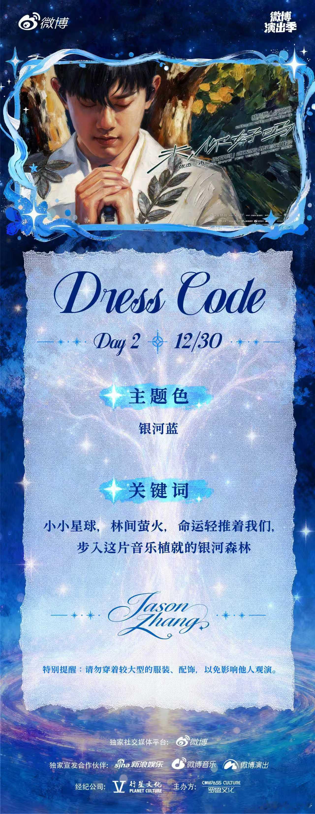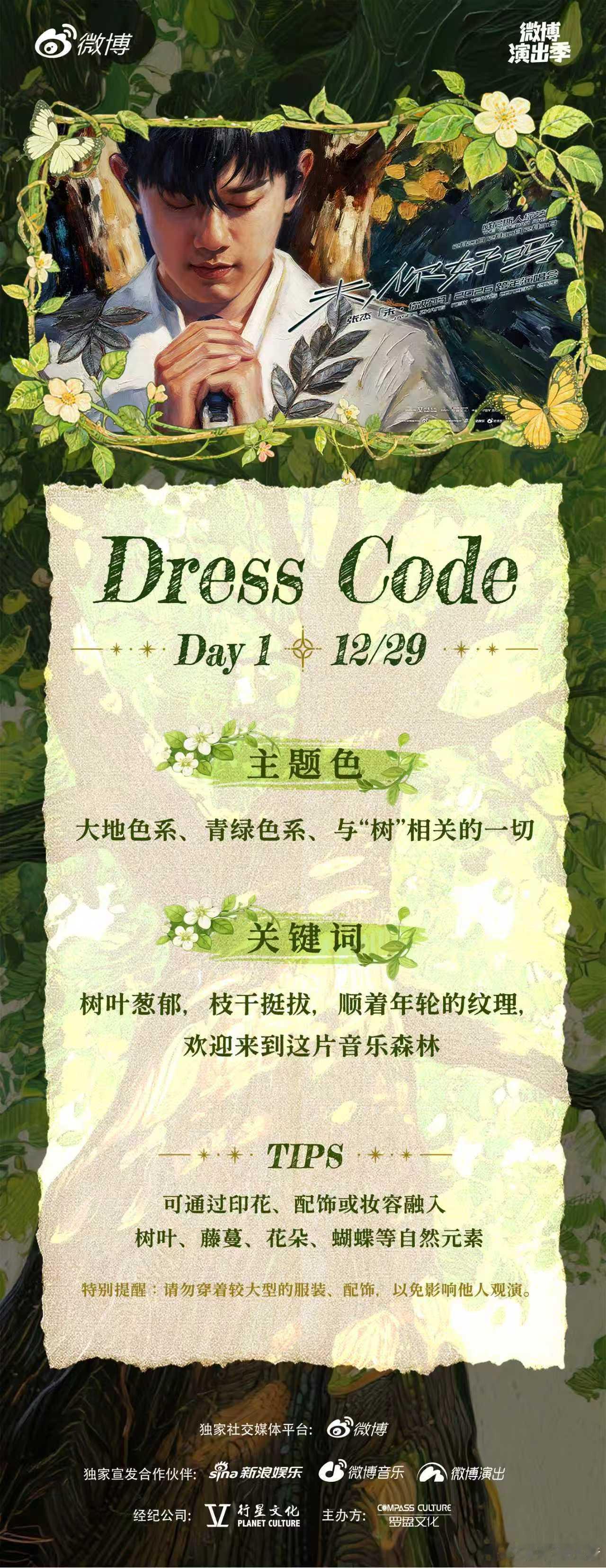 张杰跨年演唱会DressCode 终于等到你!工作室今天发布了跨年演唱会三天的Dress Code,分别是树、银河、狂欢派对主题,期待歌迷朋友们的穿搭啦😚