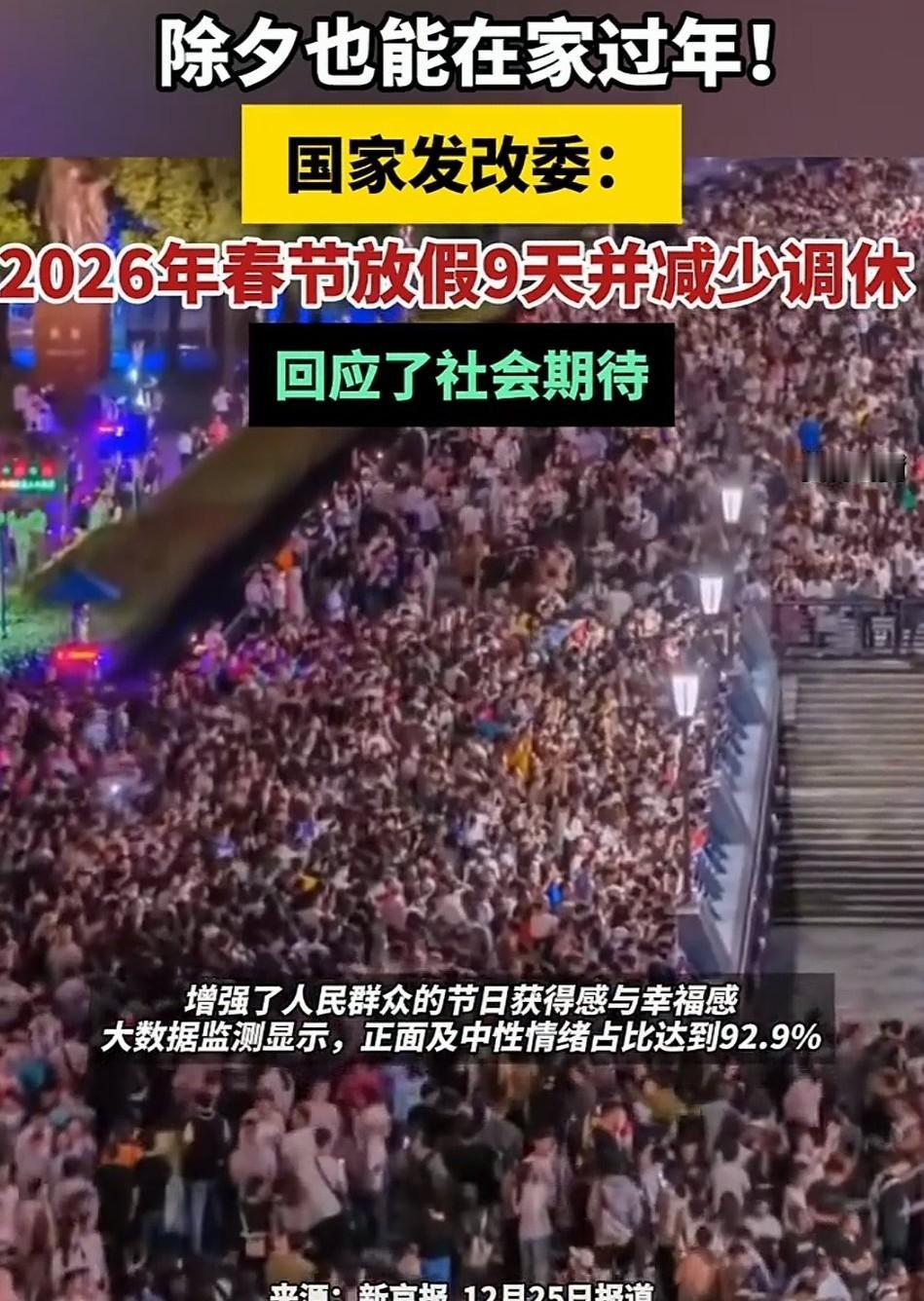 2026春节放假9天!除夕正式纳入假期,调休仅2天太贴心 2