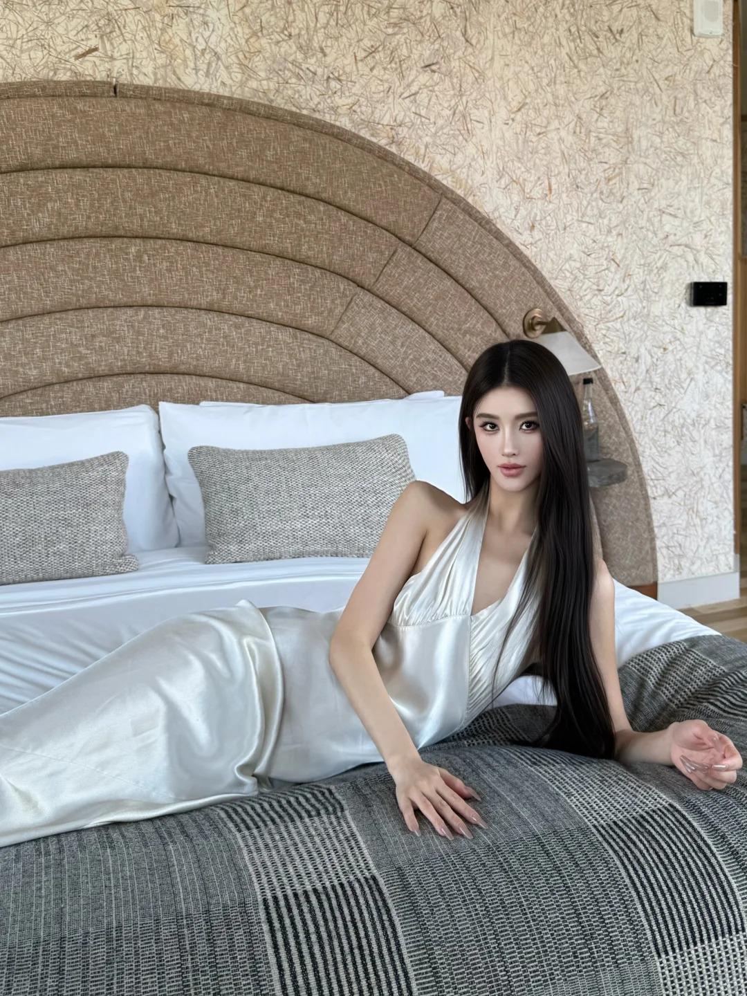 乌黑秀发衬托着身子轻盈婉约的模特少女,自带温婉绣韵之姿,似传世的古典绣品,质感与灵动兼备。言语时语调轻柔婉转,笑起来眉尾的绢纱碎发与小腿的缂丝线条相映,朱唇皓齿又顾盼生辉,俏皮感融入古韵绣意,越品越有雅致韵味。