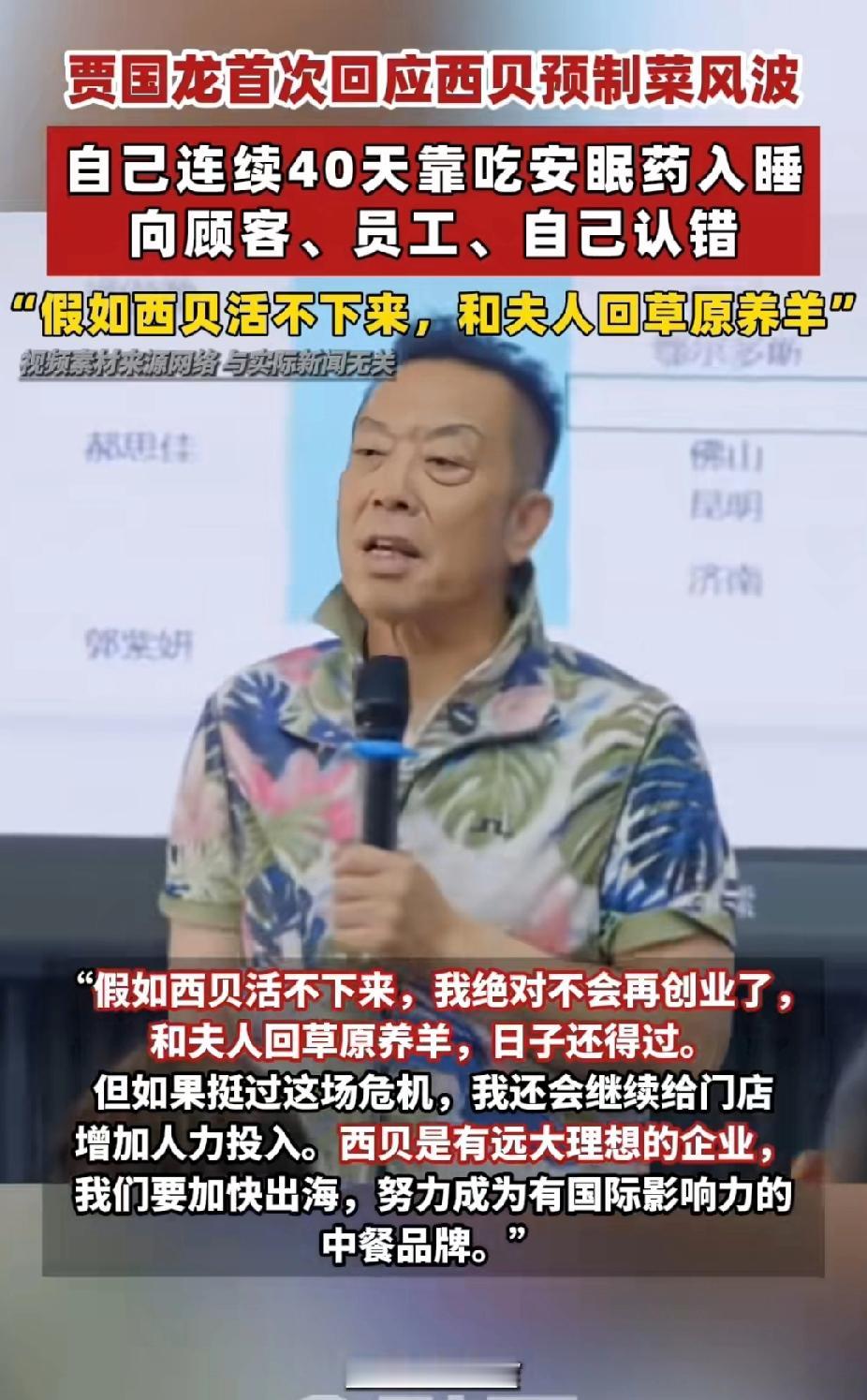 本以为事情已经过去3个多月了,大家慢慢忘了,事情就结束了,没想到贾老板又出面回应,舆论又起,他说自己40多天来都靠安眠药入睡,很痛苦难过,每天有处理不完的事,他还总结了自己失败的3点原因,一是正面硬刚罗永浩,二是开放厨房,三是微信群内内涵别人是黑社会。。。看他总结的这几点,好无语,到现在是依然不知道问题出在哪,如果有机会重来,恐怕还得吃安眠药入睡。他还向顾客、员工、自己道歉,表示如果西贝活不下来,会和夫人回草原养羊,这个决定不错,带着最后的骄傲和预制菜回草原吧!