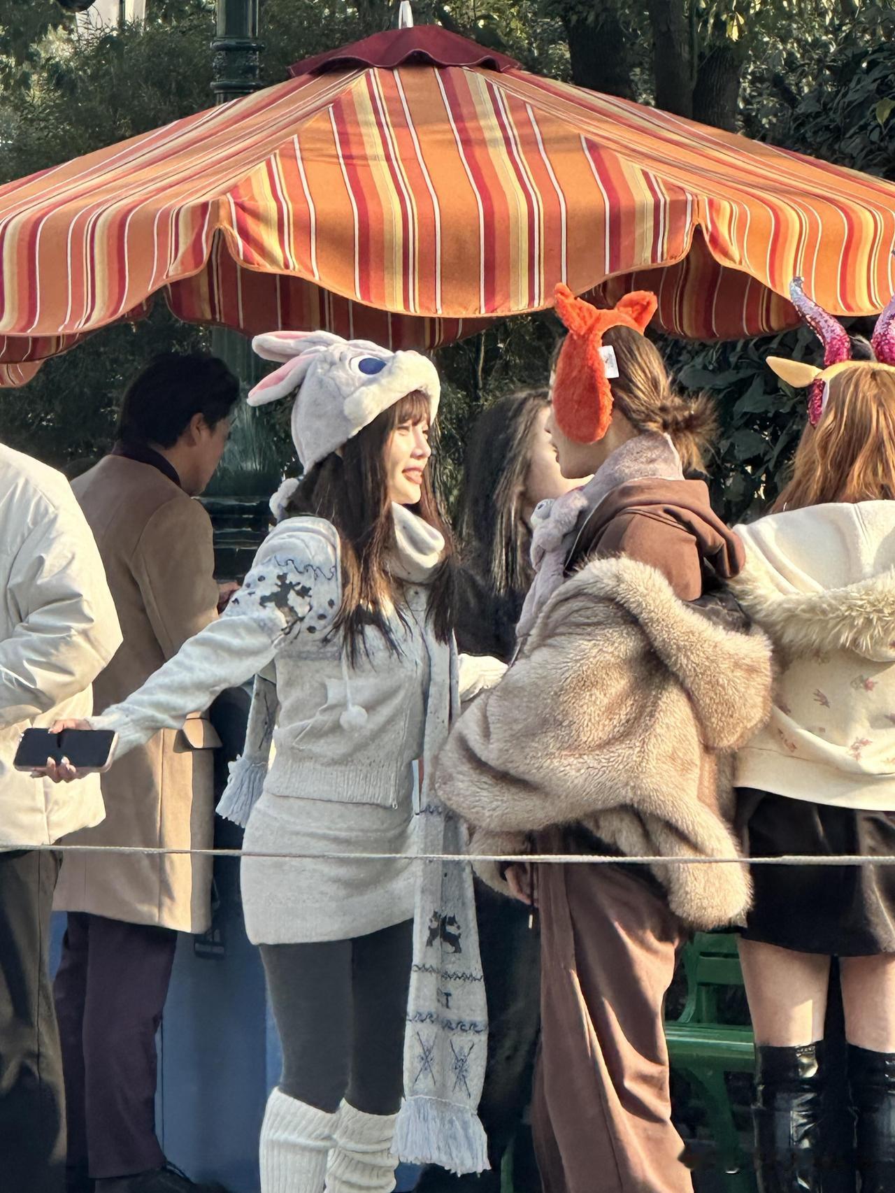 12月25日,李小璐与好朋友冉莹颖现身上海迪士尼被网友偶遇。她一身冬装穿搭,头上戴了一个可爱的兔帽,身材纤细,完全看不出她已经44岁了。她们一行人在观看花车巡演时,李小璐与朋友有说有笑,在场群众争相拍照。