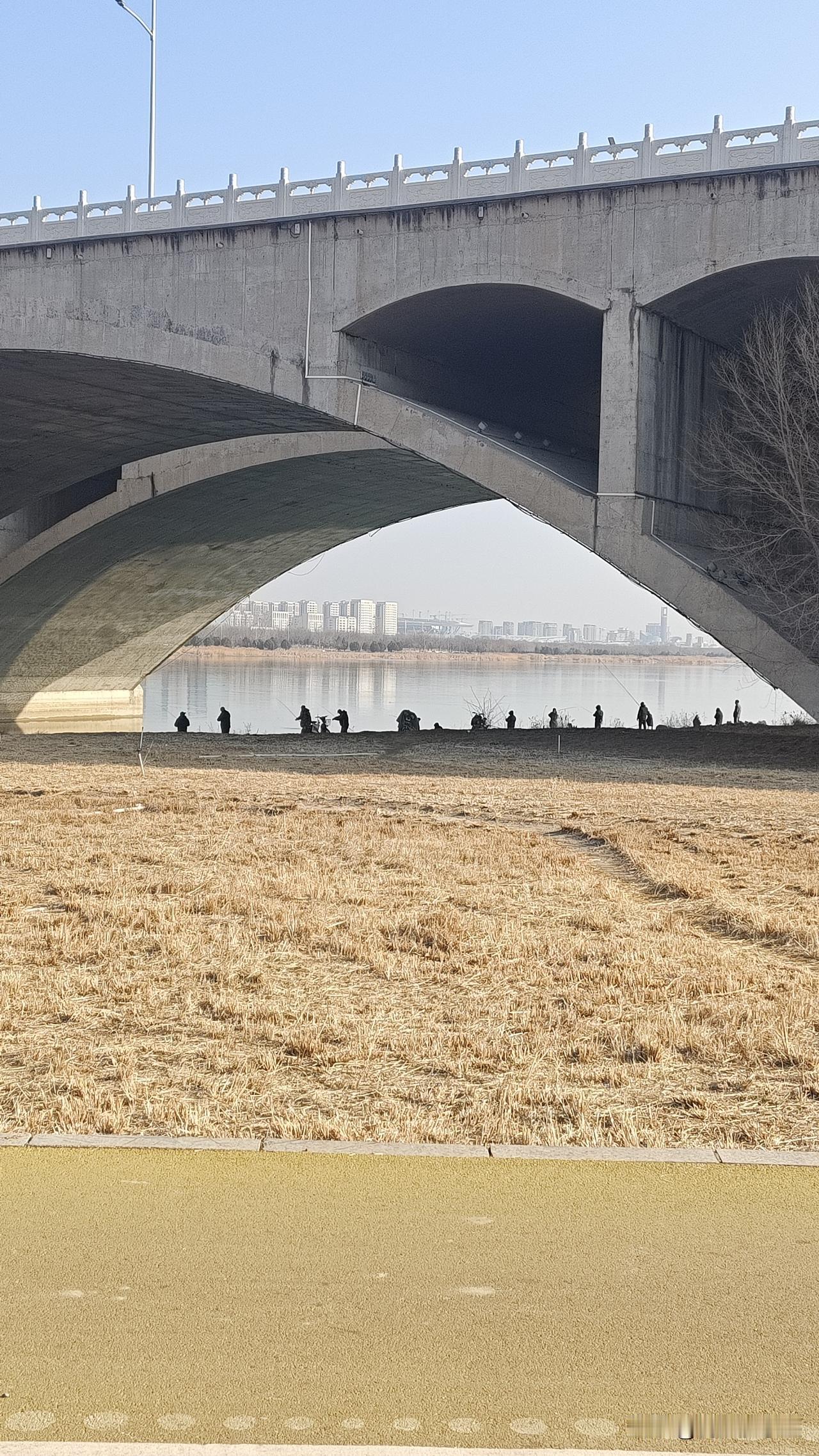 石家庄新城大桥下面,钓鱼爱好者太多了! 这里过去有养殖区,后来撤了。 其实这里的大鱼,早就钓完了,一句话,狼多肉少。