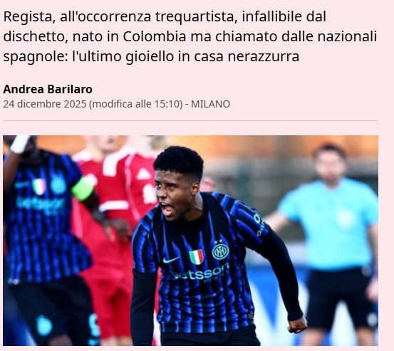 直播吧12月25日讯近日,《米兰体育报》谈到了国际米兰U19小将迪兰·萨拉特,他们表示球员在加盟球队后迅速展现出全面的实力。