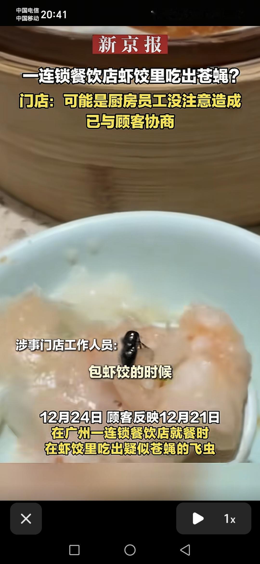广州一家餐饮店,有顾客反映在吃到虾枣时,馅料里有疑似苍蝇的飞虫,涉事门店回应称,有可能是员工在剥虾饺的时候,没有注意,苍蝇飞进去。很多网友称虽然是出现了卫生的问题,但是可以肯定的是门店做的不是预制菜,而是现包现蒸。很多广东人对于日制菜都是特别敏感的,尤其广东的早茶,大家都非常的在意,如果能吃到香包的含。啊点大家都会比较满意。