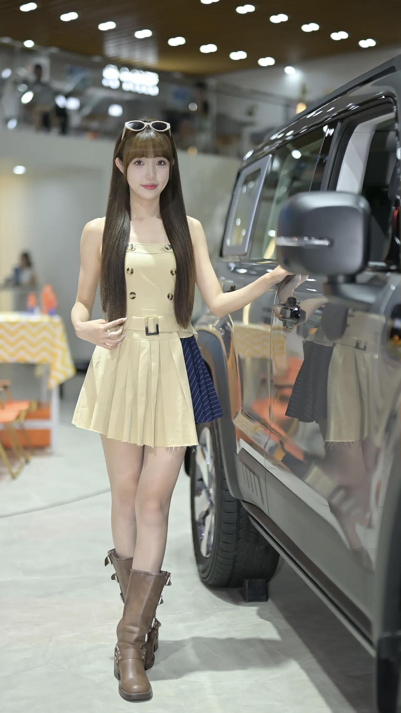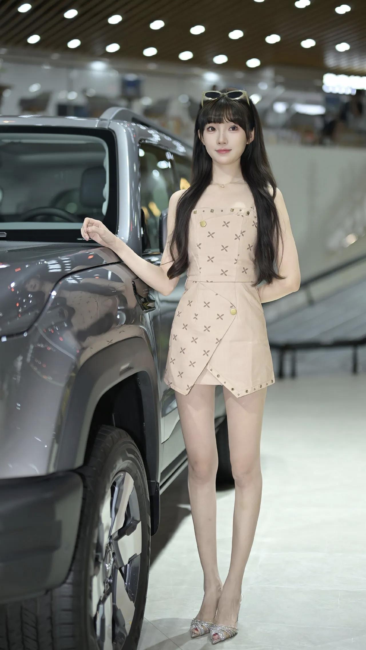 在爱车上自拍的美女