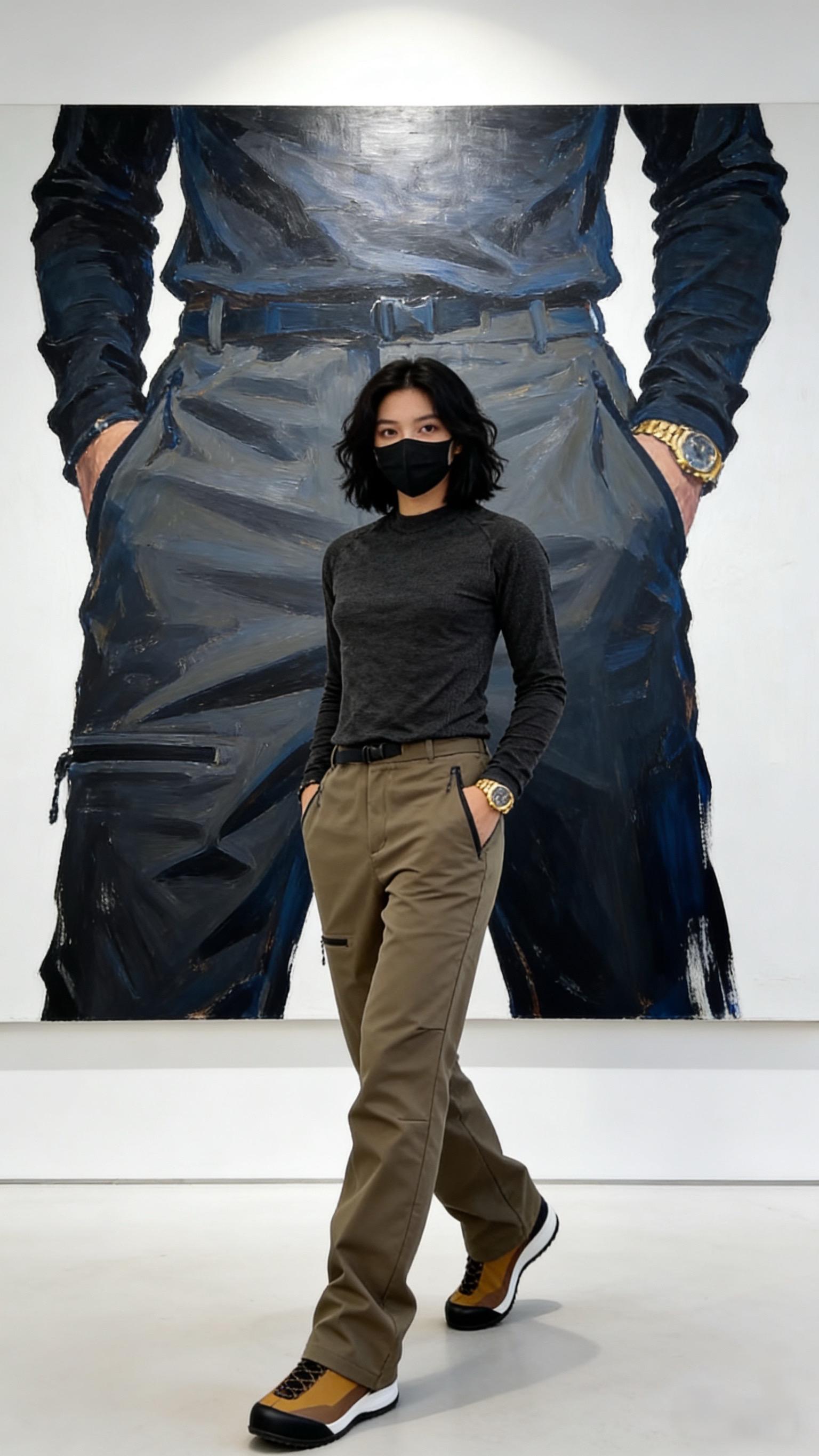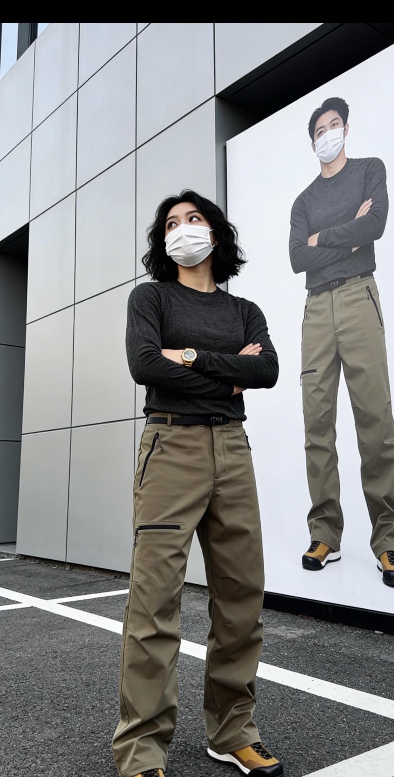 弯刀立裁拼接工装裤四季机能风可调节直筒裤简约透气休闲长裤
