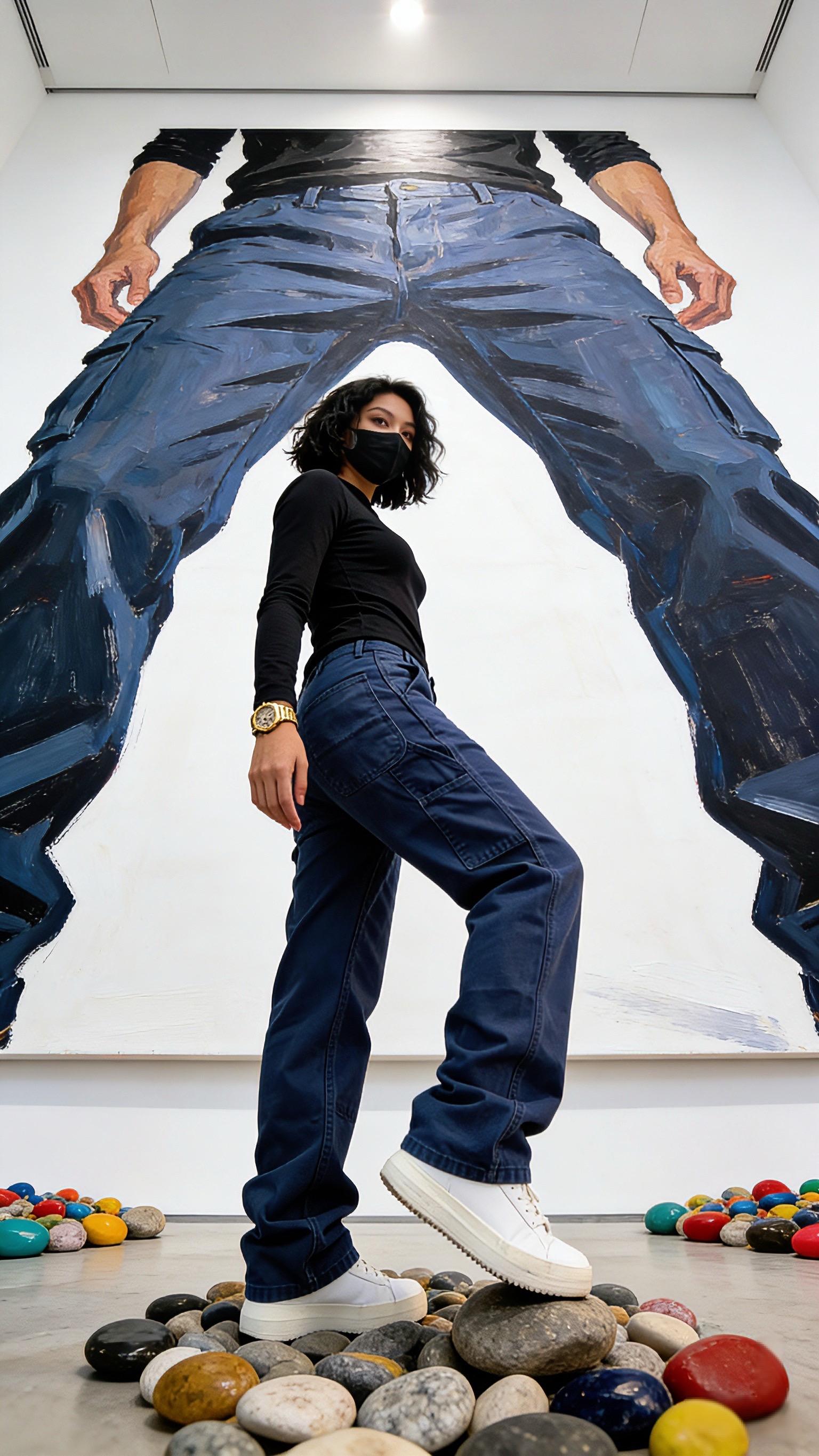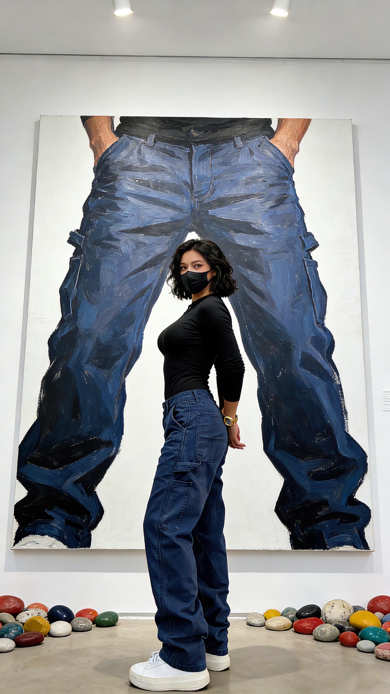 巴黎潮牌男士宽松直筒牛仔裤烫钻印花复古高街设计感亮片阔腿长裤