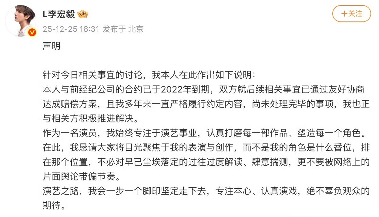 李宏毅被芒果告了,限制消费了。看粉丝说是未成年时和🥭签的合同被坑了,这几年一直
