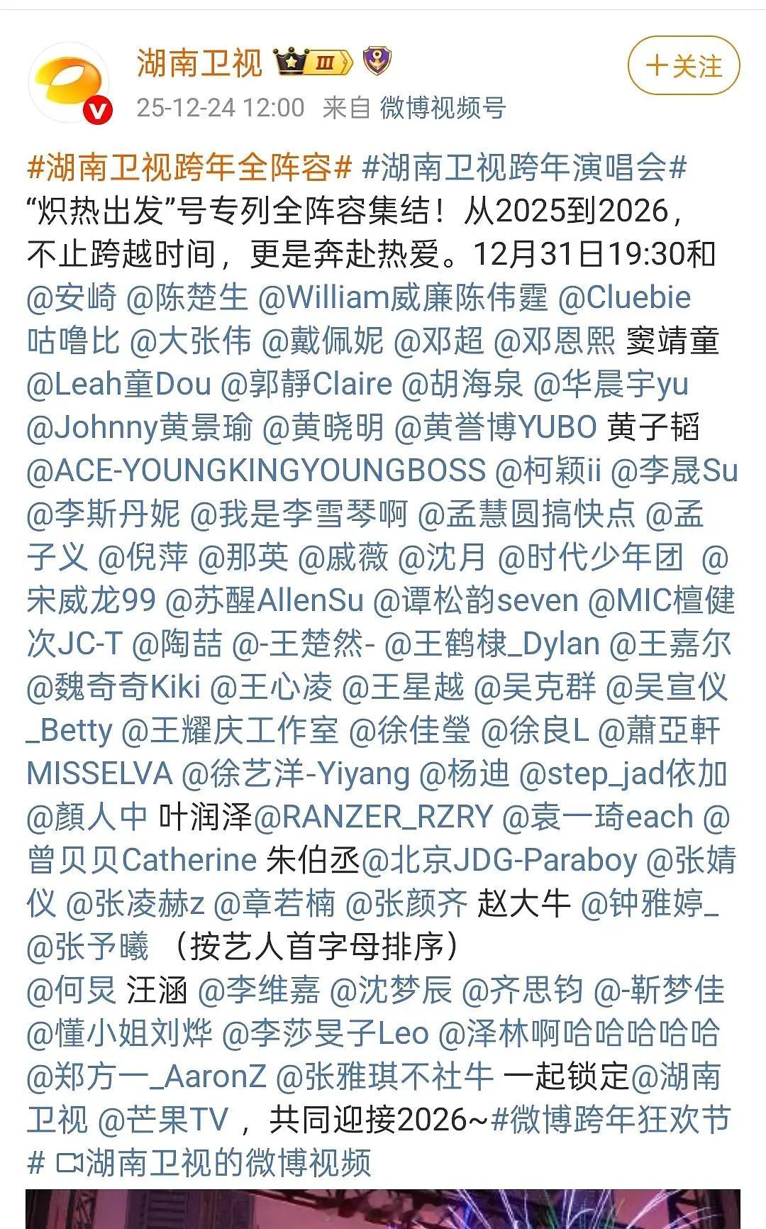 湖南卫视跨年晚会这官宣阵容是认真的吗v认识的能对上脸的不超一半🤣