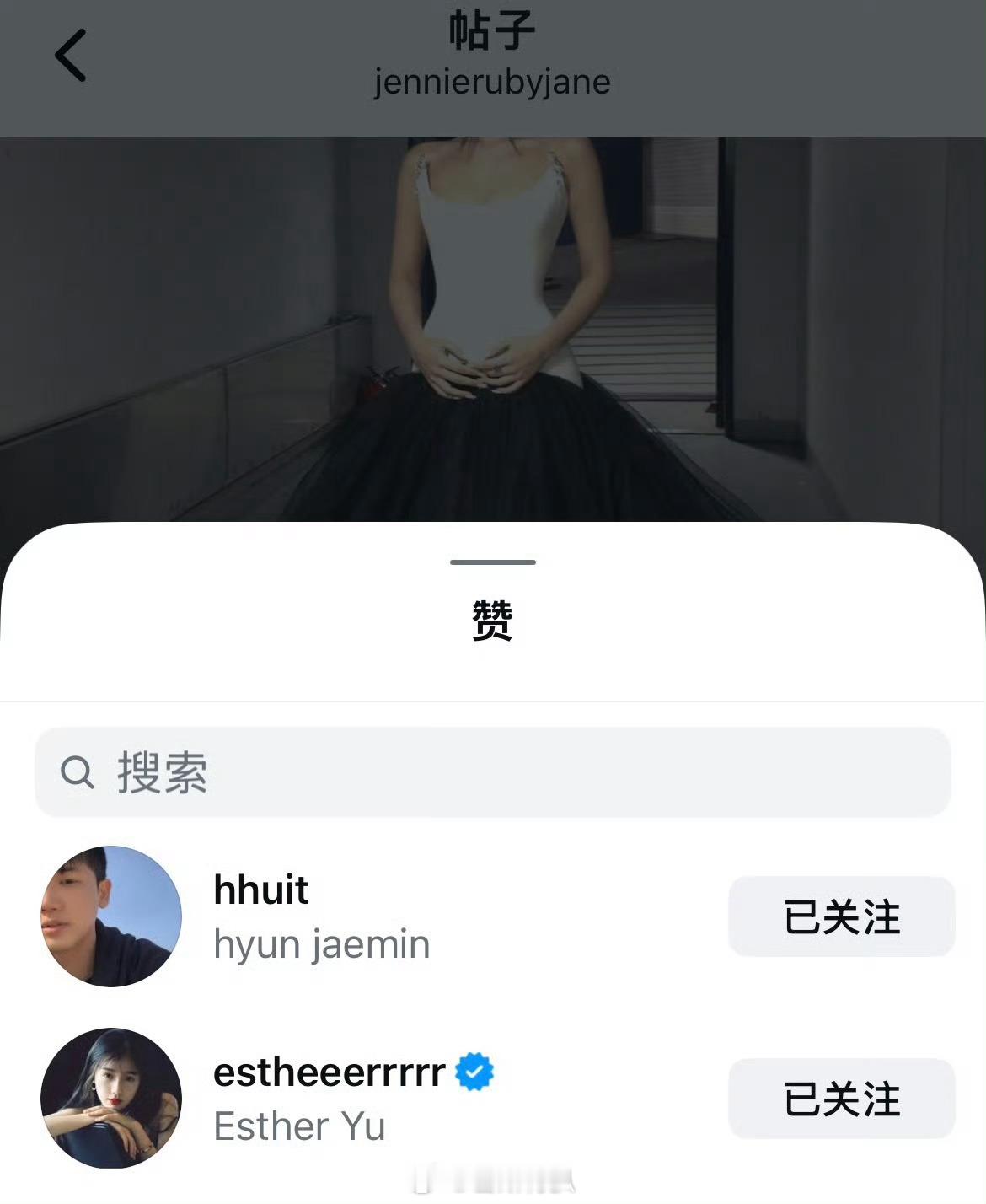 虞书欣在外网点赞了Jennie的图文…依旧❤️韩