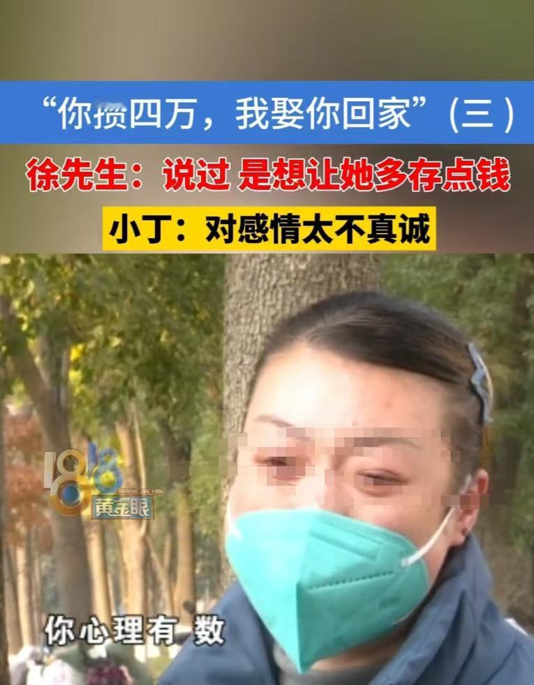 杭州,男子让女子攒够4万元就娶她,女子未攒够钱,对方却另寻他人。女子认为对方不忠,必须给自己一个说法,可男子却说:“我和新女友在一起,是和你分手之后。”他还把添加新女友的截图发给了女子看。可女子反驳道:“那时候你刚刚搬出我的出租屋,我们还没有分手呀,只是在闹矛盾。” 这一切的根源,都源于那个让丁晓现在想起来就唏嘘的“四万元婚约”,28岁的丁晓背井离乡来到杭州,这座城市对她来说原本满是陌生和冰冷,她之前经历过一段失败的婚姻,孩子留给了前夫,自己一个人出来打工谋生,异乡漂泊的孤独感,像潮水一样时不时涌上心头,一点点瓦解着她的心理防线,就在这个时候老乡徐先生走进了她的生活。 徐先生长相干净帅气,又带着同乡的情分,对丁晓格外上心,日常嘘寒问暖,那种细致入微的体贴,正好戳中了丁晓内心最柔软的地方,急需情感慰藉的她,很快就沦陷了,上一段婚姻的失败让她格外渴望证明自己值得被爱,哪怕过去过得一地鸡毛,她也坚信这次自己的眼光不会错,徐先生就是能给她安稳的人。 两人相处了几个月,感情逐渐稳定后,丁晓试探着提起了结婚的事,让她高兴的是徐先生没有拒绝,但却抛出了一个特别的条件:“等你什么时候攒够四万块钱,我就把你娶回家。”这句话在当时的丁晓听来,根本不是刁难,反而是对两人共同未来的激励,她像抓住了救命稻草一样,开始拼命攒钱,她太想在老家亲友面前扬眉吐气,太不想被父母看作是“没人要的老姑娘”,这份四万元的约定,成了她努力的全部动力。 可丁晓的父亲在得知这件事后却强烈反对,老人家凭着半辈子的人生阅历,直觉徐先生不靠谱,劝女儿多留个心眼,但这份反对反而激起了丁晓的逆反心理,她觉得父亲根本不懂自己想要的幸福,甚至不惜为此跟家里闹翻,也要维护徐先生。 毕竟当初她生病的时候,徐先生眼都不眨就掏出两千块钱带她去看病,那份温存早就深深刻在了她心里,让她认定了这个男人。 可同居生活终究逃不过琐碎的消磨,最初的热情慢慢褪去后,两人之间的摩擦越来越多,徐先生那份曾经的温柔渐渐冷却,对丁晓越来越冷淡,丁晓越是感觉不到安全感,就越想通过“闹腾”的方式博取关注,希望能挽回当初的温情,可这样的相处模式让两人都疲惫不堪,终于徐先生忍无可忍,提出了搬离,收拾东西回了自己原来的住处。 这就是那场“罗生门”的开端,在丁晓的认知里,这只是情侣间常见的冷战,虽然不住在一起了,但她还会时不时给徐先生发信息联系,默认两人的关系还在存续,等彼此冷静下来就能和好,可在徐先生的剧本里从他搬离出租屋的那一刻起,这段感情就已经彻底画上了句号。 丁晓一直蒙在鼓里,直到朋友偷偷传来消息,说徐先生已经有了新女友她才如梦初醒,巨大的愤怒和委屈涌上心头,她立刻找上门去质问徐先生,觉得他就是在感情里不忠,背叛了两人的约定,可徐先生却显得理直气壮,直接拿出手机,翻出了添加新女友的截图给她看,坚称自己和新女友在一起是在跟她分手之后,根本不存在脚踩两只船的说法。 看着截图上的时间,丁晓更崩溃了,她当场反驳说那个时间点徐先生才刚搬出她的出租屋没多久,两人只是在闹矛盾压根没正式分手,可徐先生完全不认可她的说法,在他看来搬离就意味着关系的终结,后续丁晓的联系不过是她单方面的纠缠,一个认定是“闹矛盾冷静”,一个认定是“分手终结”,两种截然不同的认知,让这场对峙陷入了僵局。 不甘心的丁晓甚至主动联系了徐先生的新女友林女士,想跟对方说清楚情况,要么结成同盟,要么至少讨个公道,可让她没想到的是,林女士的一番话像一盆冰水,彻底浇灭了她的气焰。 这位新女友完全不在乎所谓的“插足”指控,反而异常冷静地告诉丁晓,作为女人手里有钱才是最可靠的,劝她别把精力浪费在这种感情纠纷上,与其在这里污蔑别人,不如多花点时间读书提升自己。 林女士这种近乎冷酷的清醒,让丁晓愣在了杭州的街头,她那一刻才猛然意识到,自己拼尽全力去守护、去努力奔赴的“四万元婚约”,在别人眼里竟然如此不值钱,甚至有些可笑。 她辛辛苦苦攒钱,满心期待着攒够钱就能结婚,结果钱还没攒够,那个设下约定的人,已经转头找了更富有、更“独立”的目标,后来徐先生倒是松口,说那四万元只是想让她多存点钱,还愿意为此道歉,可这句轻飘飘的解释,根本填补不了丁晓内心的荒凉。 如今的丁晓处境格外艰难,之前为了维护徐先生,她跟父亲闹翻,老家是回不去了,而自己全心投入的感情,又被对方轻飘飘地判定为“早已结束”,常常在街头忍不住痛哭,不只是因为失恋的痛苦,更因为那种被全世界抛弃的无助感,她这两段感情里,都在拼命寻找一个可以依靠的人,却从来没意识到,无论是物质还是情感,过度依靠别人,终究要承担巨大的风险。 (信息来源:1818黄金眼2025年12月21日(文中人物均为化名))