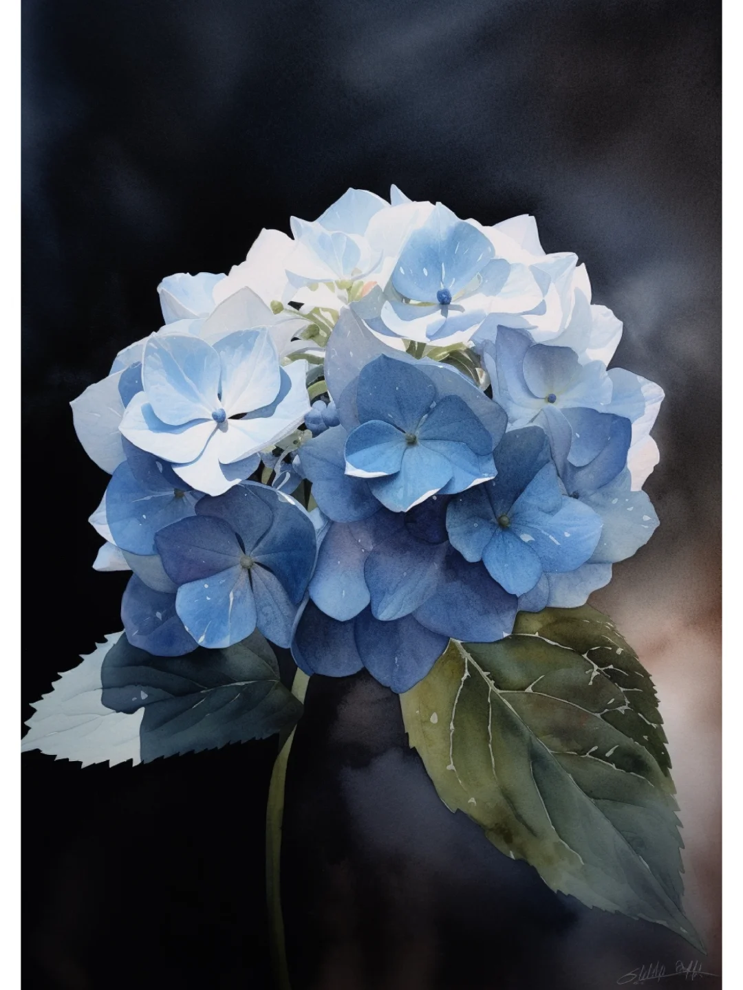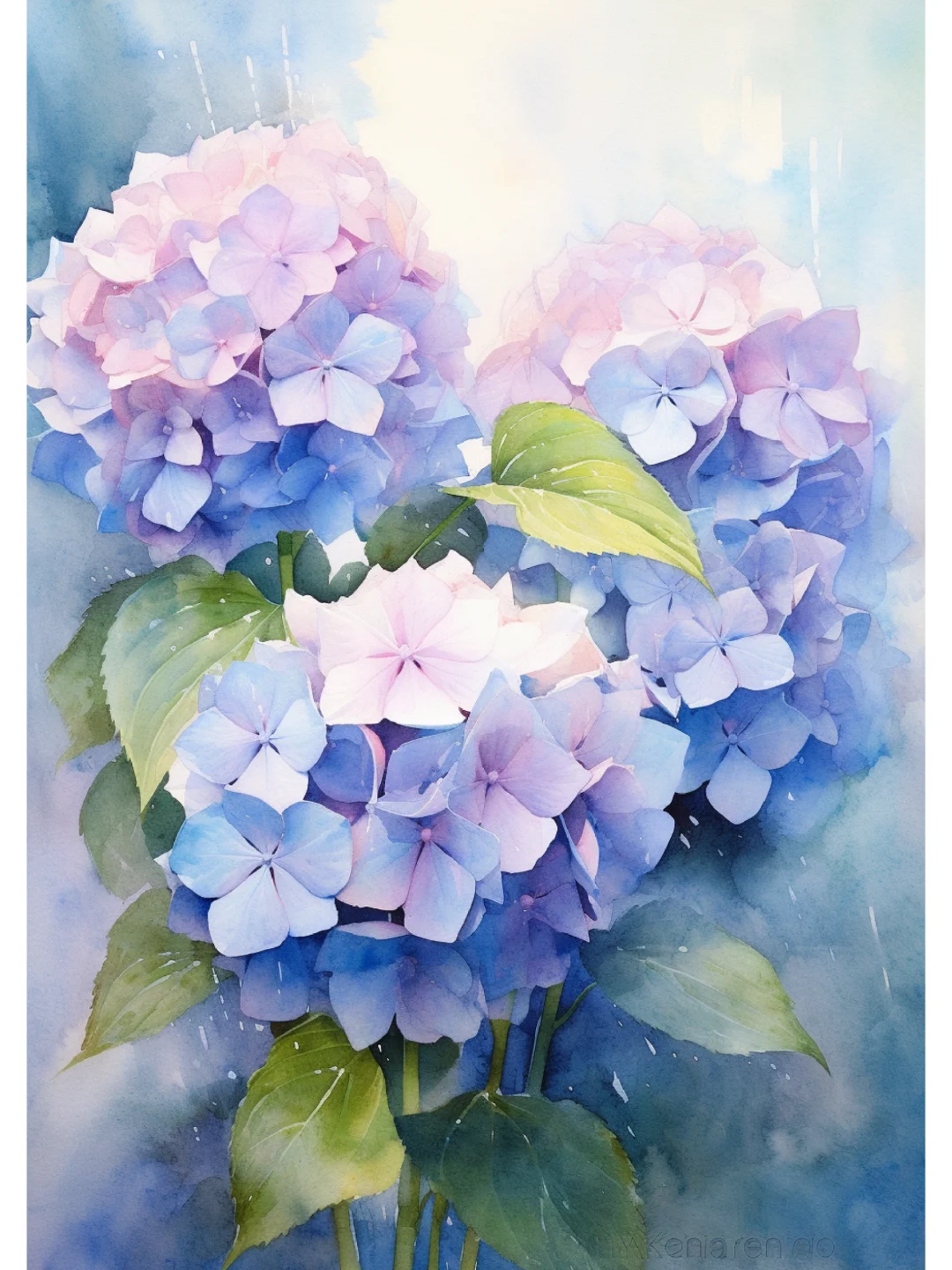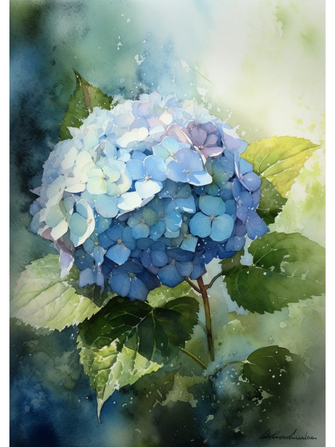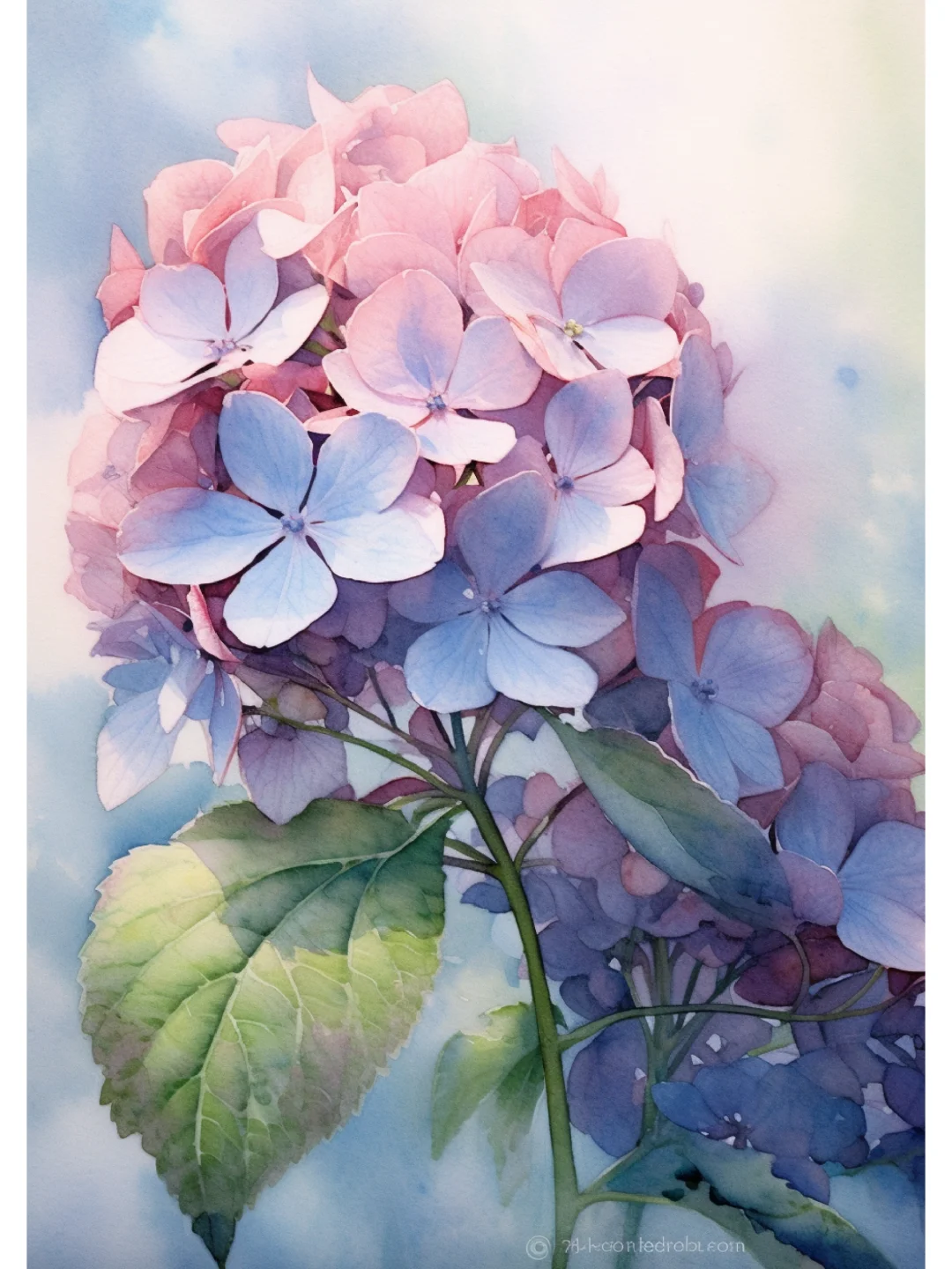 AI水彩 绣球花