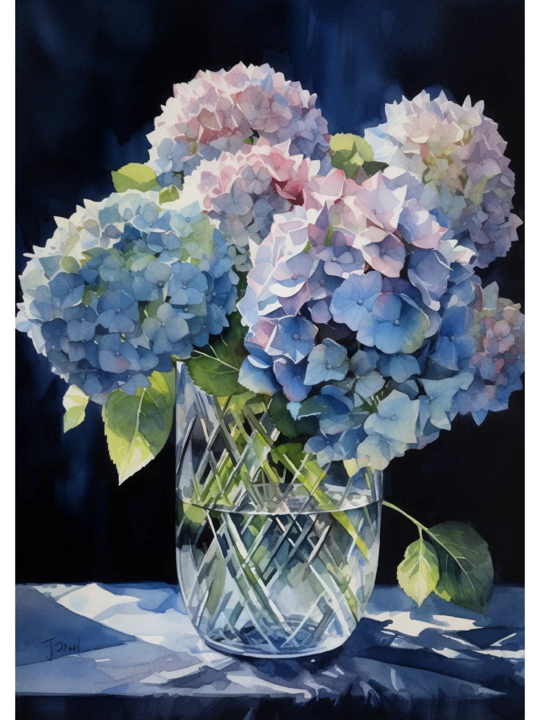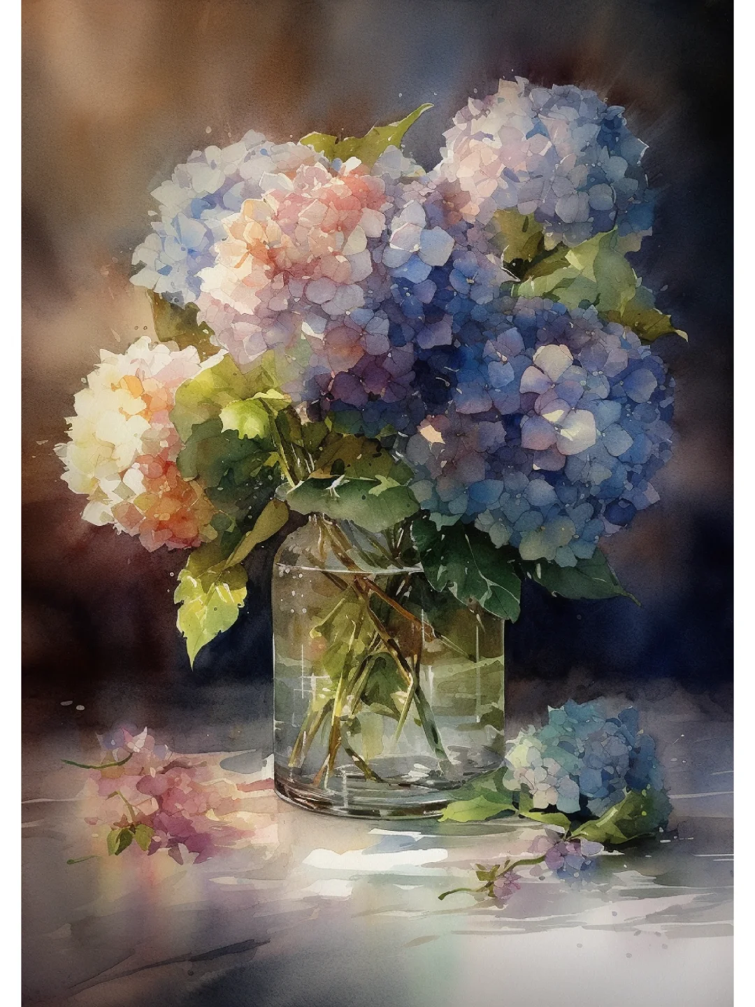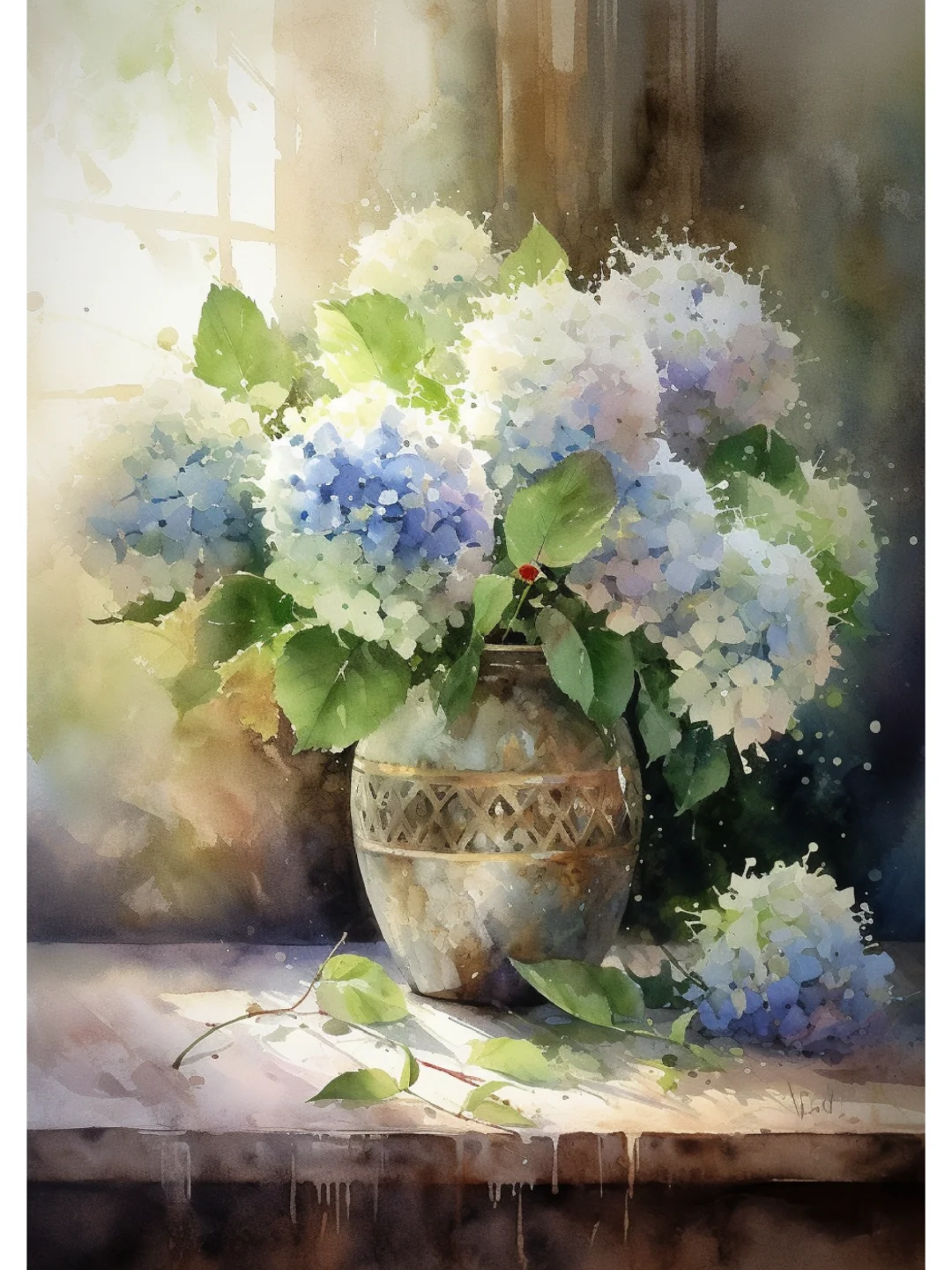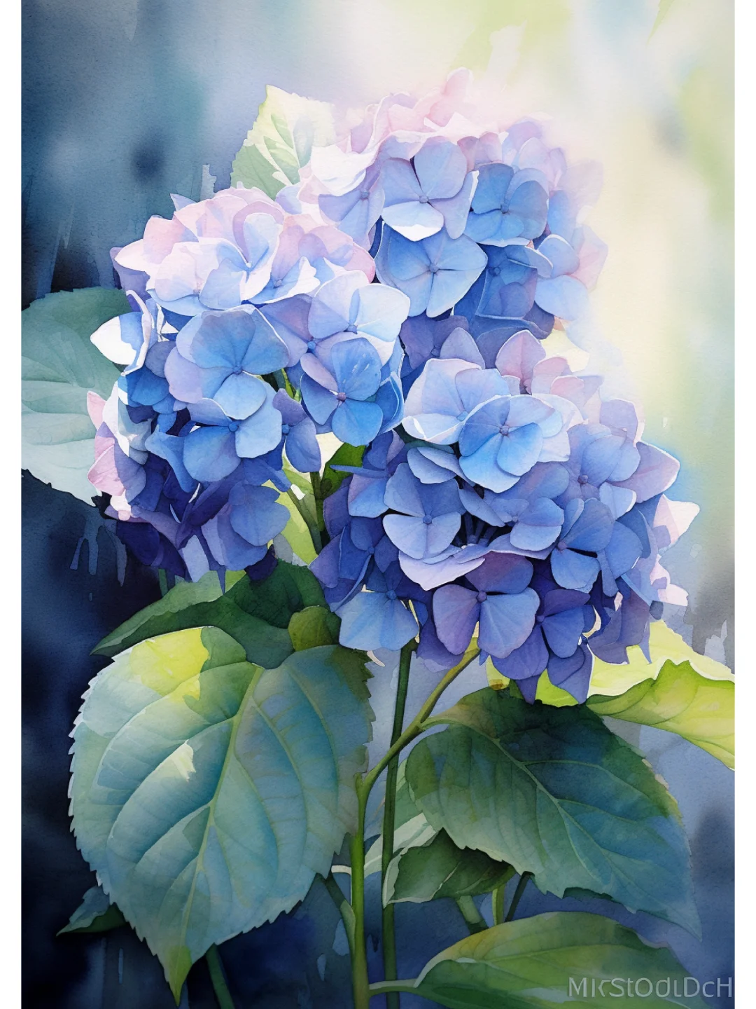 AI水彩 绣球花